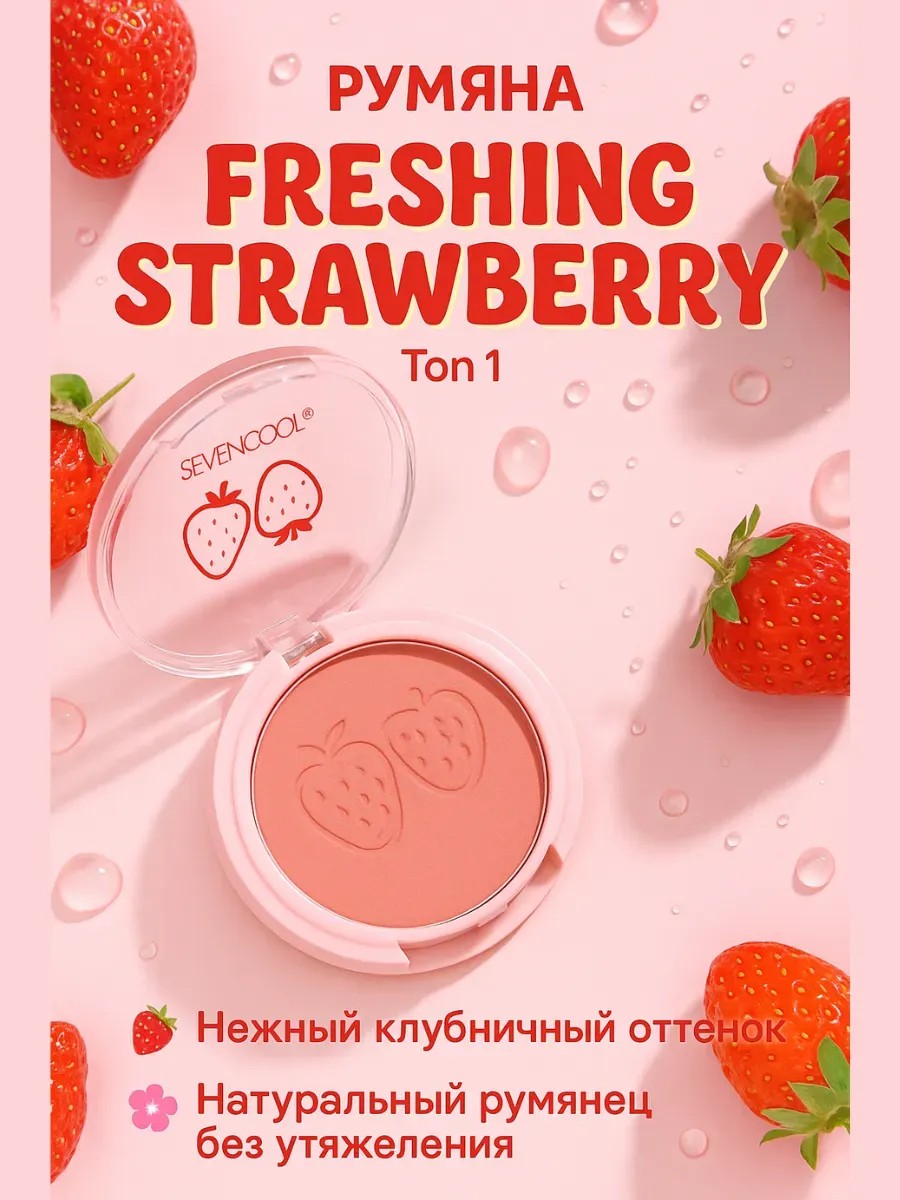 Румяна для лица SEVENCOOL Freshing Strawberry тон 1— бархатистый румянец с клубничным акцентом