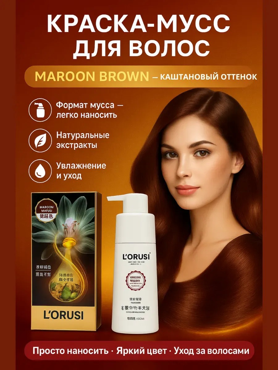 Краска для волос LORUSI — это современная пена краска для волос, которая легко наносится, равномерно распределяется и обеспечивает стойкий результат. Благодаря ухаживающей формуле с растительными экстрактами и маслами средство одновременно закрашивает седину и заботится о здоровье волос.