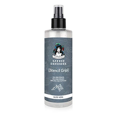 Tattoo Defender Stencil Grip is a gel indicated for transferring stencils onto the skin. It contains aloe vera and extracts of Siegesbeckia orientalis and Rabdosia rubescens. Apply a small amount of Stencil Grip with a gentle massage, then transfer the stencil. Hold the stencil on the skin for approximately 5-10 seconds and, once removed, allow it to dry for approximately 3-5 minutes. Stencil Grip is non-greasy, has a natural, hypoallergenic fragrance, and does not contain Quaternium-15, a surfactant that releases formaldehyde. Formaldehyde is listed by the International Agency for Research on Cancer as a probable carcinogen. Stencil Grip is a medical device. INSTRUCTIONS FOR USE Apply a small amount of Stencil Grip with a gentle massage, then transfer the stencil. Hold the stencil on your skin for about 5-10 seconds, and once removed, let it dry for about 3-5 minutes. For best results, we recommend applying a small amount, letting it dry, then applying a second coat before transferring the stencil.WHEN DOES IT EXPIRY? The product is sealed and has a shelf life of 6 months from opening. The sealed product is fully effective for up to 36 months after production. The package contains 200 ml. IS IT HIGH QUALITY? Tattoo Defender's Stencil Grip uses only high-quality raw materials specially selected for their effectiveness on tattooed skin. The product's formulation and manufacturing are strictly and entirely MADE IN ITALY, researched and created in an ISO 9001-9002 certified laboratory, adhering to all the highest quality standards for cosmetic products. IS IT SAFE? Contains aloe vera and rhabdosia rubescens and other high-quality ingredients. Does not contain Quanternium-15, a formaldehyde-releg surfactant included by the International Agency for Research on Cancer in its list of substances definitively carcinogenic. HOW LONG DOES THE STENCIL LAST? Stencil transfers made with Stencil Grip are very durable. The stencil lasts a long time. It dries quickly and is non-greasy. For best results, we recommend applying a small amount, letting it dry, then applying a second coat before transferring the stencil. WHY IS IT? It's a gel for transferring the stencil onto the skin for the tattoo.Tattoo Defender - Stencil Grip 200ml - Gel Per Il Trasferimento Dello Stencil - Super Resistente - Made In ItalyDESCRIPTION DU PRODUIT DESCRIPTION DU PRODUIT Stencil Grip de Tattoo Defender est un gel indiqué dans le transfert du pochoir sur la peau du corps. Il contient de l'aloe vera et des extraits de siegesbeckia orientalis et rabdosia rubescens. Appliquer une petite quantité de stencil grip par un massage doux puis transférer le pochoir. Maintenir le pochoir sur la peau pendant environ 5 10 secondes et une fois enlevé, le laisser sécher pendant environ 3 5 minutes. Stencil Grip n'est pas gras, a un parfum naturel hypoallergénique et ne contient pas de Quaternium-15, un tensioactif qui libère de la formaldéhyde. Cette dernière est insérée par l'Association internationale pour la recherche sur le cancer dans la liste des substances certainement cancérigènes. Stencil Grip est dispositif médical. MODE D'EMPLOI Appliquez une petite quantité de Stencil Grip par un massage doux, puis transférez le pochoir. Maintenez le pochoir sur la peau pendant environ 5 10 secondes et une fois enlevé, laissez-le sécher pendant environ 3 5 minutes. Pour une meilleure tenue, nous vous recommandons d'appliquer une petite quantité, de laisser sécher puis d'appliquer une deuxième fois, puis de procéder au transfert du pochoir.QUAND IL EXPIRE? Le produit est scellé et a une durée de conservation de 6 mois à compter de l'ouverture. Le produit scellé est pleinement efficace jusqu'à 36 mois après la production. Le paquet est de 200 ml. EST-CE DE QUALITÉ ? Stencil Grip de Tattoo Defender utilise uniquement des matières premières de haute qualité spécialement sélectionnées pour leur efficacité sur la peau tatouée. La formulation et la fabrication du produit sont strictement et entièrement MADE IN ITALY, étudiées et créées dans un laboratoire certifié ISO 9001-9002, respectant toutes les normes de qualité des produits cosmétiques de la plus haute qualité. C'EST SUR'? Contient de l'aloe vera et de la rhabdosia rubescens et des ingrédients de haute qualité. Ne contient pas de Quanternium-15, un tensioactif qui libère du formaldéhyde, inclus par l'Association Internationale de Recherche sur le Cancer dans la liste des substances définitivement cancérigènes. COMBIEN DE TEMPS DURE LE POCHOIR ? Le transfert de pochoir réalisé avec Stencil Grip est très résistant. Le pochoir dure longtemps. Il sèche rapidement et est non gras. Pour une plus grande tenue, nous vous recommandons d'appliquer une petite quantité, de laisser sécher puis de l'appliquer une deuxième fois, puis de procéder au transfert du pochoir. POURQUOI EST-CE? C'est un gel pour transférer le pochoir sur la peau pour ensuite réaliser le tatouage.
