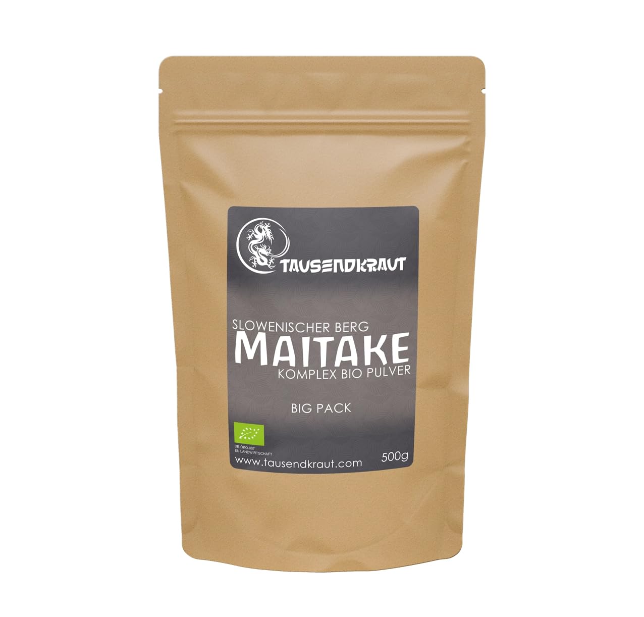 Tausendkraut Organic Vital Mushroom Powder - Reishi - Hericium - Cordyceps - Shiitake - European Made - Superior Quality Thousand Herbs - 200g to 500g (500g Maitake 500g)