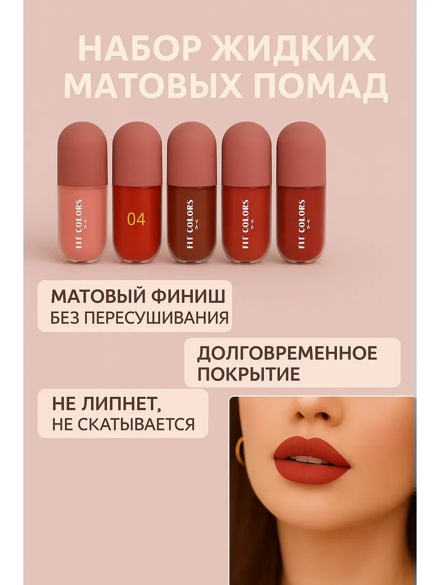 Идеально подойдёт тем, кто ищет: матовую помаду, жидкую помаду для губ, стойкую помаду, набор помад, нюдовые оттенки губной помады, косметику для макияжа губ, компактную помаду, качественную бюджетную помаду, помаду без запаха, помаду не отпечатывающуюся, матовую губную помаду с длительным эффектом.