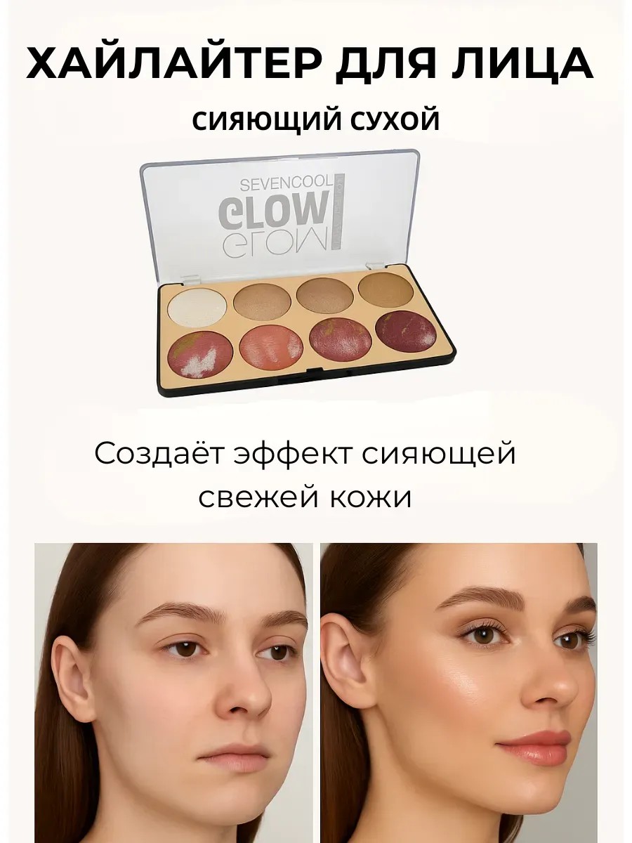 | Полное наименование товара | Палетка хайлайтеров и румян Seven Cool "Glow Shine" |