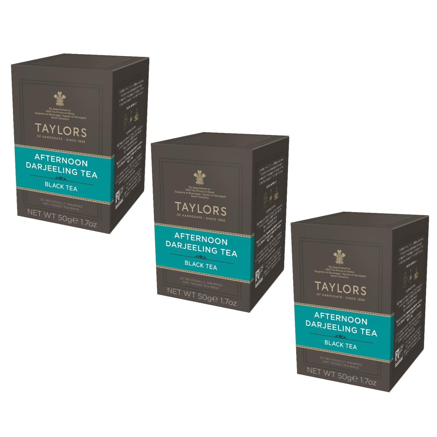 TAYLORS We are an independent, family-run tea and coffee business from Harrogate, Yorkshire. We have strong family values, such as a love of fairness, quality, creativity, and the importance of treating people with respect. And we are fully dedicated to the pursuit of extraordinary flavors. Our story began in 1886 when Charles Taylor and his two sons founded a tea and coffee business. C. E. Taylors Sons became known for its quality, and the flagship shop at 1 Parliament Street, Harrogate, became famous throughout the region. "Afternoon Darjeeling Tea": Darjeeling tea grows at high altitudes, allowing it to develop slowly and delicate flavors reminiscent of Muscat grapes. It is an exceptional and world-renowned tea—and we only buy the very best during the peak harvest of the second hunting season. (3 x 20 individually labeled and wrapped tea bags – 150 grams). [CERTIFIED ETHICAL TEA] - We are proud founding members of the Ethical Tea Partnership and also hold Rainforest Alliance certifications to conserve biodiversity and ensure sustainable living conditions. [WIDE SELECTION] - The Taylors range offers a wide selection of teas and herbal infusions, from rich, select black teas to organic and decaffeinated blends, elegant green teas, and refreshing infusions. [SLOW GROWING] - Darjeeling tea is grown at high altitudes, allowing it to grow slowly and develop delicate aromas reminiscent of Muscat grapes. This blend harvests the best leaves from the second season onwards. [PREPARATION] - To make one cup of product, steep one tea bag for approximately 2-3 minutes in water at a temperature of around 100 C. The product is packaged in the UK. [DETAILS] - The shipment includes 3 tins of Darjeeling black tea for a total of. INGREDIENTS 100 Darjeeling black tea.Taylors Après-midi Thé noir Darjeeling Après-midi Thé noir délicat et rafraîchissant - 3 x 20 filtres à thé emballés individuellement (150 Gr)DESCRIPTION DU PRODUIT DESCRIPTION DU PRODUIT TAYLORS Nous sommes une famille indépendante de thé et de café de Harrogate, dans le Yorkshire. Nous avons de fortes valeurs familiales, comme l'amour de l'équité, de la qualité, de la créativité et l'importance de traiter les gens avec respect. Et nous sommes entièrement dévoués à la recherche de saveurs extraordinaires. Notre histoire commence en 1886, lorsque Charles Taylor et ses deux fils fondent une entreprise de thé et de café. C. E. Taylors Sons est devenu connu pour sa qualité et le mag phare du 1 Parliament Street, Harrogate est devenu célèbre dans toute la région. « Afternoon Darjeeling Tea » : Le thé Darjeeling se trouve en haute altitude, ce qui lui permet de pousser lentement et de développer des saveurs délicates rappelant le raisin muscat. C'est un thé exceptionnel et de renommée mondiale - et nous n'achetons que le meilleur pendant le pic de récolte de la deuxième saison de chasse. (3 x 20 sachets de thé étiquetés et emballés individuellement – 150 grammes). [THÉ ÉTHIQUE CERTIFIÉ] - Nous sommes fiers d'être membres fondateurs de l'Ethical Tea Partnership et possédons également les certifications Rainforest Alliance pour conserver la biodiversité et garantir des conditions de vie durables. [LARGE SÉLECTION] - La gamme Taylors propose une vaste sélection de thés et tisanes allant des riches thés noirs sélectionnés aux mélanges biologiques et décaféinés, des thés verts élégants aux infusions rafraîchissantes. [CROISSANCE LENTE] - Le thé Darjeeling se trouve en altitude, ce qui lui permet de pousser lentement et de développer des arômes délicats rappelant le raisin muscat. Ce mélange récolte les meilleures feuilles dès la deuxième saison. [PRÉPARATION] - Pour obtenir une tasse de produit, faire infuser un sachet de thé pendant environ 2-3 minutes dans de l'eau à une température d'environ 100 C. Le produit est emballé au Royaume-Uni. [DÉTAILS] - L'envoi comprend 03 boîtes de thé noir Darjeeling pour un total. INGRÉDIENTS Thé noir 100 Darjeeling.