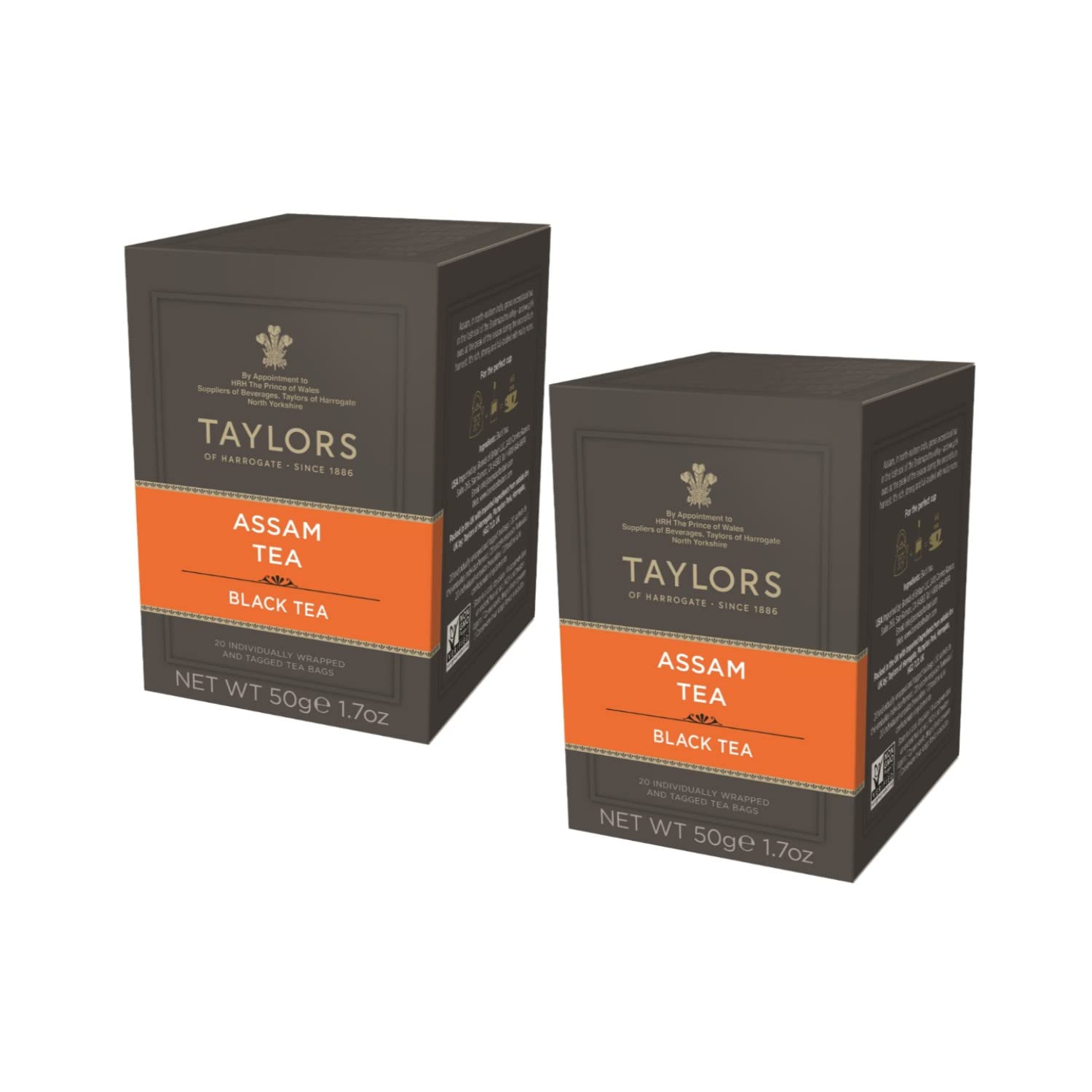 TAYLORS We are an independent, family-run tea and coffee company from Harrogate, Yorkshire. We have strong family values, such as a love of fairness, quality, creativity, and the importance of treating people with respect. And we are completely, totally dedicated to the pursuit of extraordinary flavors. Our story began in 1886 when Charles Taylor and his two sons founded a tea and coffee business. Taylors Sons became known for its quality, and the flagship shop at 1 Parliament Street, Harrogate, became famous throughout the region. "Assam Tea": In northeastern India, exceptional tea grows in the lush soil of the Brahmaputra Valley—and we pick ours at the height of the season from some of the finest estates in the region during the second harvest. It is rich, powerful, and full-bodied with mortar notes (2 x 20 individually labeled and wrapped tea bags - 100 grams). [CERTIFIED ETHICAL TEETH] - We are proud founding members of the Ethical Tea Partnership and also hold Rainforest Alliance certifications to conserve biodiversity and ensure sustainable living conditions. [WIDE SELECTION] - The Taylors range offers a wide selection of teas and herbal infusions, from rich, select black teas to organic and decaffeinated blends, elegant green teas, and refreshing infusions. [BRAHMAPUTRA VALLEY] - Assam, in northeastern India, cultivates exceptional tea in the soil of the Brahmaputra Valley. This blend comes from the harvest at the peak of the season during the second flush. Rich, strong, full-bodied, and malty flavor. [PREPARATION] - To make one cup, steep one tea bag for approximately 4-5 minutes in water at a temperature of around 100 C. The product is packaged in the UK. [DETAILS] - The shipment includes 2 boxes of Assam black tea. INGREDIENTS 100 black tea.Taylors Thé Assam Nero Thé Noir Forte Maltato Thé Nero Indiano Assam - 40 Bustines (100 Gr) Bustine Tea Nero Incartate SingoleDESCRIPTION DU PRODUIT DESCRIPTION DU PRODUIT TAYLORS Nous sommes une famille indépendante de thé et de café de Harrogate, dans le Yorkshire. Nous avons des valeurs familiales fortes, telles que l'amour de l'équité, de la qualité, de la créativité et l'importance de traiter les gens avec respect. Et nous sommes complètement, totalement dévoués à la recherche de saveurs extraordinaires. Notre histoire commence en 1886, lorsque Charles Taylor et ses deux fils ont fondé une entreprise de thé et de café. CE Taylors Sons est devenu connu pour sa qualité, et le mag phare du 1 Parliament Street, Harrogate est devenu célèbre dans toute la région. "Assam Tea": Dans le nord-est de l'Inde, un thé exceptionnel pousse dans le terrain luxuriant de la vallée du Brahmapoutre - et nous cueillons le nôtre au plus fort de la saison parmi certaines des meilleures propriétés de la région lors de la deuxième récolte. Il est riche, puissant et corsé avec des notes de mortier (2 x 20 sachets de thé étiquetés et emballés individuellement - 100 grammes). [DENTS ÉTHIQUES CERTIFIÉES] - Nous sommes fiers d'être membres fondateurs de l'Ethical Tea Partnership et nous avons également des certifications Rainfost Alliance pour conserver la biodiversité et assurer des conditions de vie durables. [LARGE SÉLECTION] - La gamme Taylors propose une large sélection de thés et de tisanes allant des riches thés noirs sélectionnés aux mélanges biologiques et décaféinés, des thés verts élégants aux infusions rafraîchissantes. [VALLÉE DU BRAHMAPOUTRE] - L'Assam, dans le nord-est de l'Inde, cultive un thé exceptionnel dans le sol de la vallée du Brahmapoutre. Ce mélange provient de la récolte au plus fort de la saison lors du deuxième volet. Saveur riche, forte, corsée et maltée. [PRÉPARATION] - Pour obtenir une tasse de produit, faire infuser un sachet de thé environ 4-5 minutes dans de l'eau à une température d'environ 100 C. Le produit est emballé au Royaume-Uni. [DÉTAILS] - L'envoi comprend 2 boîtes de thé noir Assam . INGRÉDIENTS 100 thé noir.