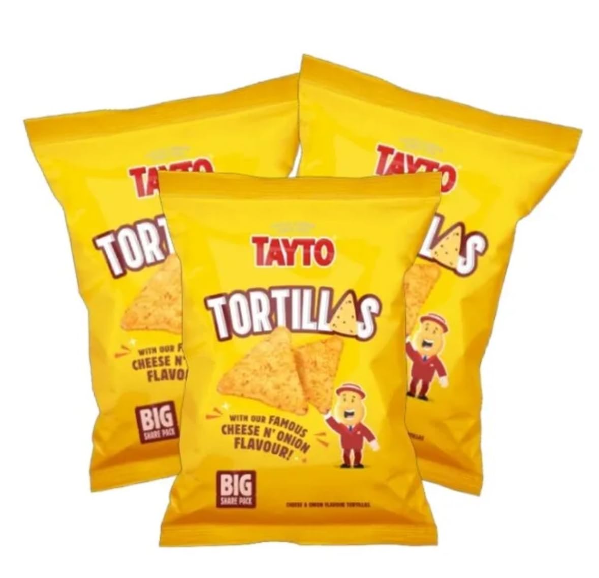 Tayto Crisps Cheese & Onion Tortillas 12 x 180g Share Bag Limited Edition.