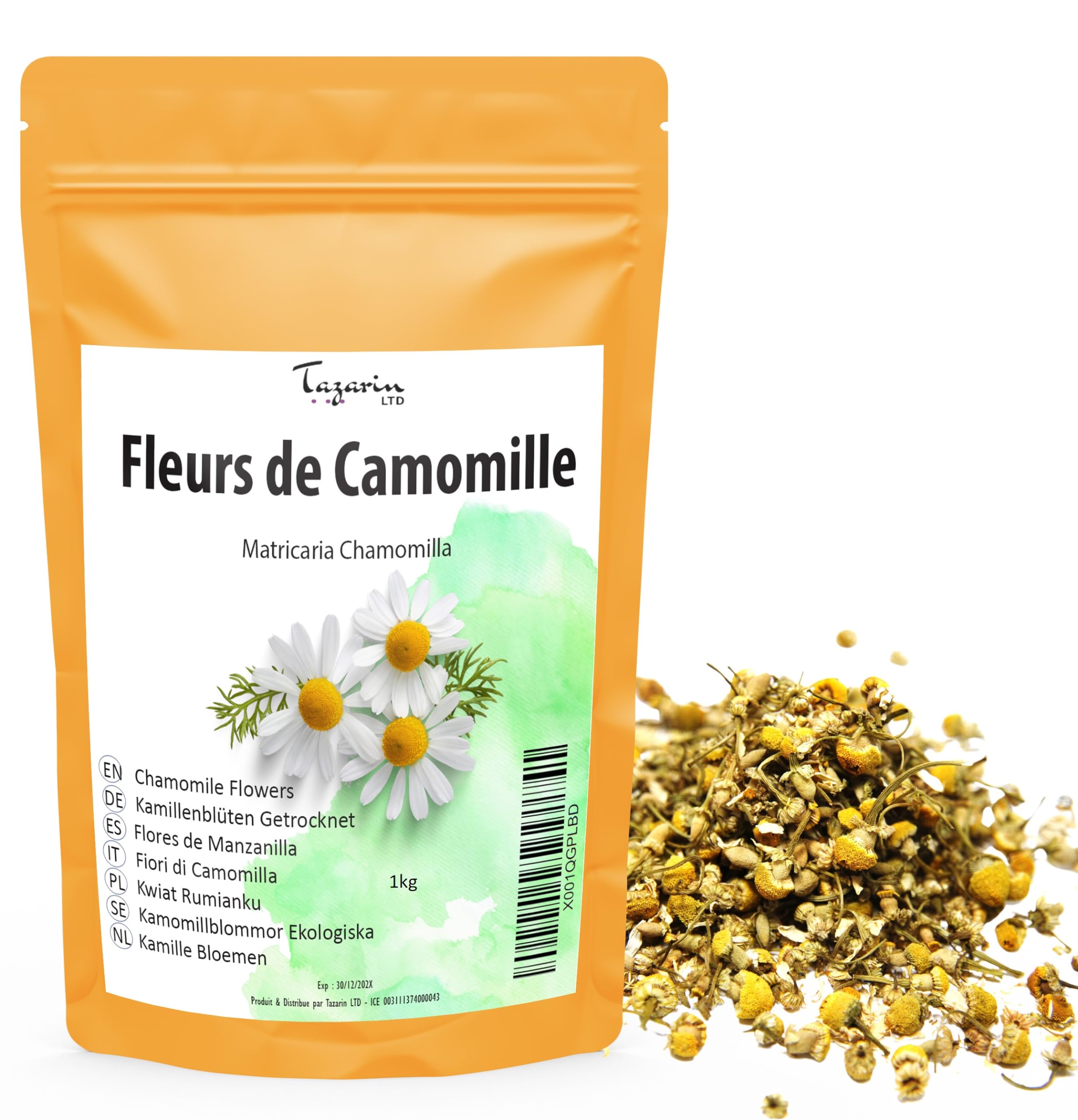 Chamomile Flower Infusion - Premium Chamomile Flower Herbal Tea - Intense Flavor, 100 Natural, Additive-Free. For infusions and dishes. Contents: 1 kg of 100 Chamomile Flowers (Matricaria Chamomilla). Chamomile, with its botanical name Matricaria chamomilla, is a herbaceous plant well-known for its soothing properties and its many uses in traditional medicine and herbalism. Chamomile flowers, often used to prepare infusions and herbal teas, are renowned for their health benefits and delicate aroma. Chamomile flower infusion is a soothing beverage commonly consumed to promote relaxation and relieve stress. Chamomile flower tea is appreciated for its light, floral taste, as well as its calming effects on the nervous system. It is often consumed before bedtime to promote restful sleep and relieve minor digestive upsets. Chamomile flowers are also used in various medicinal preparations for their anti-inflammatory, antispasmodic, and antioxidant properties. They can be used externally as compresses to soothe skin irritations, sunburn, and insect bites. In addition to its health benefits, chamomile is valued for its use in beauty treatments. Infusions of chamomile flowers can be used as skin tonics, helping to soothe sensitive skin and reduce redness. Chamomile is often recommended as a natural remedy for common ailments, such as headaches, menstrual cramps, and cold symptoms. However, it is important to note that some people may be allergic to chamomile, so it is recommended to consult a healthcare professional before incorporating it into your routine. INGREDIENTS 1 kg Chamomile Flowers INSTRUCTIONS Pour a handful of dried flowers over hot water and let it steep for a few minutes. SAFETY WARNING No known allergens See more✓ Tazarin LTD: Tazarin LTD products are synonymous with superior quality and safe use. All products have been produced, packaged, and shipped under the best hygienic conditions. ✓ 100 Satisfaction Guaranteed or Your Money Back: We want all our customers to be satisfied. Because if you're happy, we're happy too. That's why we prioritize quality. ✓ Chamomile Preparation Instructions: To prepare a chamomile flower infusion, simply pour hot water over a handful of dried flowers and let it steep for a few minutes. The tea can be enjoyed hot or cold, according to personal preference, and can be sweetened with honey for a touch of sweetness. ✓ Using Chamomile in Beauty Care: Chamomile flowers are also valued for their calming properties in skincare. Chamomile infusion-based tonics are used to soothe sensitive skin, reduce redness, and treat skin irritations. ✓ Medicinal Properties of Chamomile Flowers: Chamomile flowers, also known as Matricaria chamomile, are rich in beneficial compounds such as flavonoids and terpenes. These compounds give chamomile its anti-inflammatory, antispasmodic, and antioxidant properties, making it a versatile natural remedy for a variety of common ailments. ✓ Traditional Use of Chamomile Flower Tea: Chamomile flower tea is a popular beverage in many cultures around the world. It is prepared by steeping dried chamomile flowers in hot water, releg their delicate aromas and health benefits. ✓ Soothing Benefits of Chamomile Flower Infusion: Chamomile flower infusion, prepared from Matricaria chamomilla, is renowned for its calming properties. This herbal tea has been consumed for centuries to promote relaxation, relieve stress, and encourage restful sleep.1kg Fleurs de Camomille - Infusion de Camomille - Matricaria Chamomilla - Arôme Goût Intense - 100 Naturel, Pur et Sans Additifs Qualité Supérieure - TazarinLtdDESCRIPTION DU PRODUIT DESCRIPTION DU PRODUIT Infusion de Fleurs de Camomille - Tisane de fleurs de camomille haut de gamme - Goût Intense, 100 Naturel, Sans Additifs Pour infusions et plats Contenu : 1kg de 100 Fleurs de Camomille (Matricaria Chamomilla). La camomille, avec son nom botanique Matricaria chamomilla, est une plante herbacée bien connue pour ses propriétés apaisantes et ses multiples utilisations dans la médecine traditionnelle et la phytothérapie. Les fleurs de camomille, souvent utilisées pour préparer des infusions et des tisanes, sont réputées pour leurs bienfaits pour la santé et leur arôme délicat. L'infusion de fleurs de camomille est une boisson apaisante couramment consommée pour favoriser la relaxation et soulager le stress. La tisane de fleurs de camomille est appréciée pour son goût léger et floral, ainsi que pour ses effets calmants sur le système nerveux. Elle est souvent consommée avant le coucher pour favoriser un sommeil réparateur et pour soulager les troubles digestifs légers. Les fleurs de camomille sont également utilisées dans diverses préparations médicinales pour leurs propriétés anti-inflammatoires, antispasmodiques et antioxydantes. Elles peuvent être utilisées en externe sous forme de compresses pour apaiser les irritations cutanées, les coups de soleil et les piqûres d'insectes. En plus de ses bienfaits pour la santé, la camomille est appréciée pour son utilisation dans les soins de beauté. Les infusions de fleurs de camomille peuvent être utilisées comme toniques pour la peau, aidant à apaiser les peaux sensibles et à réduire les rougeurs. La camomille est souvent recommandée comme remède naturel pour les maux courants, tels que les maux de tête, les douleurs menstruelles et les symptômes du rhume. Cependant, il est important de noter que certaines personnes peuvent être allergiques à la camomille, il est donc recommandé de consulter un professionnel de la santé avant de l'incorporer. INGRÉDIENTS 1kg Fleurs de Camomille MODE D'EMPLOI Versez 1 poignée de fleurs séchées avec de l'eau chaude et laissez infuser quelques minutes. AVERTISSEMENT DE SÉCURITÉ Pas d'allergènes connus Voir plus✓ Tazarin LTD : Les produits Tazarin LTD sont synonymes de qualité supérieure et d'utilisation sûre. Tous les produits ont été produits, emballés