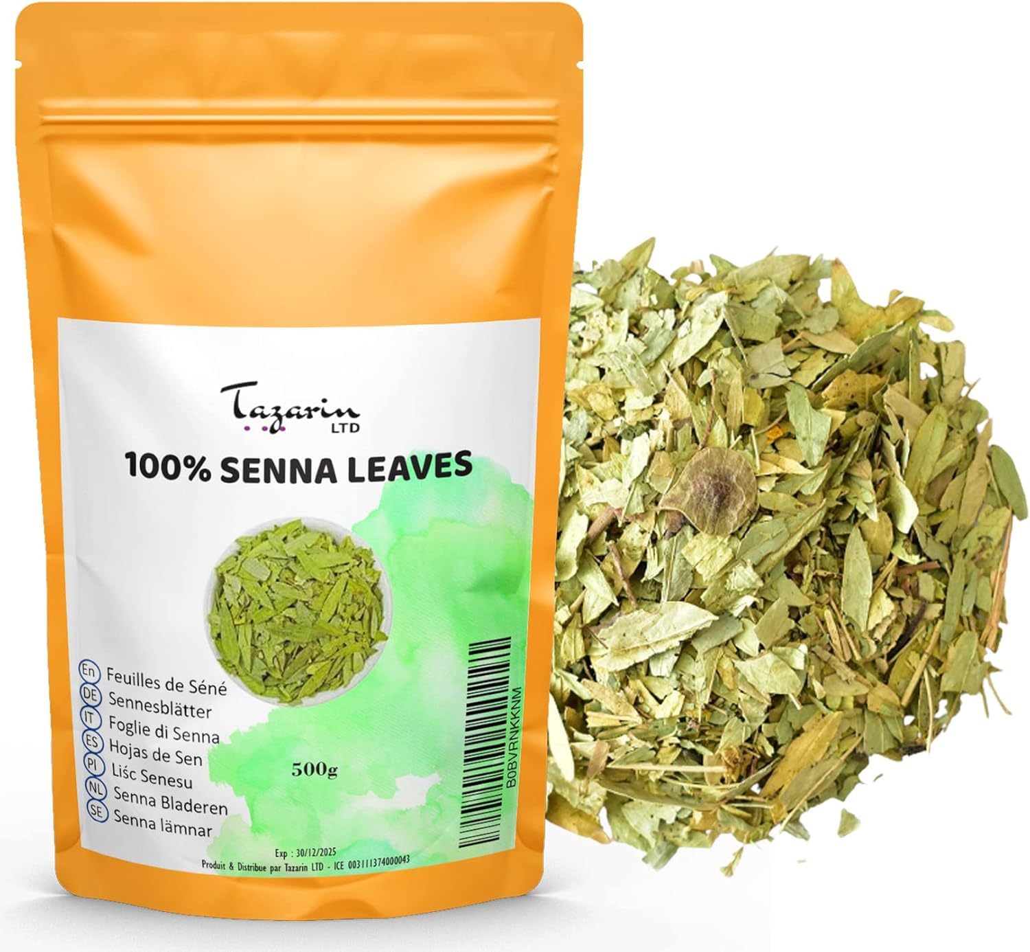 500g Feuilles de Séné Entières - Puissant Purgatif, Laxatif Naturel - Favorise le Transit Intestinal et le Nettoyage du Colon - Tisane Detox - Tazarin Ltd