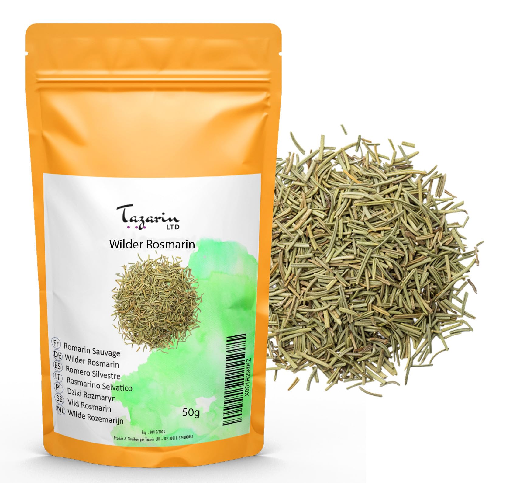 Tazarin LTD 50g Wild Atlas Rosemary Leaves Whole and Dried - Highly Aromatic Compared to Cultivated Rosemary Sun-Dried