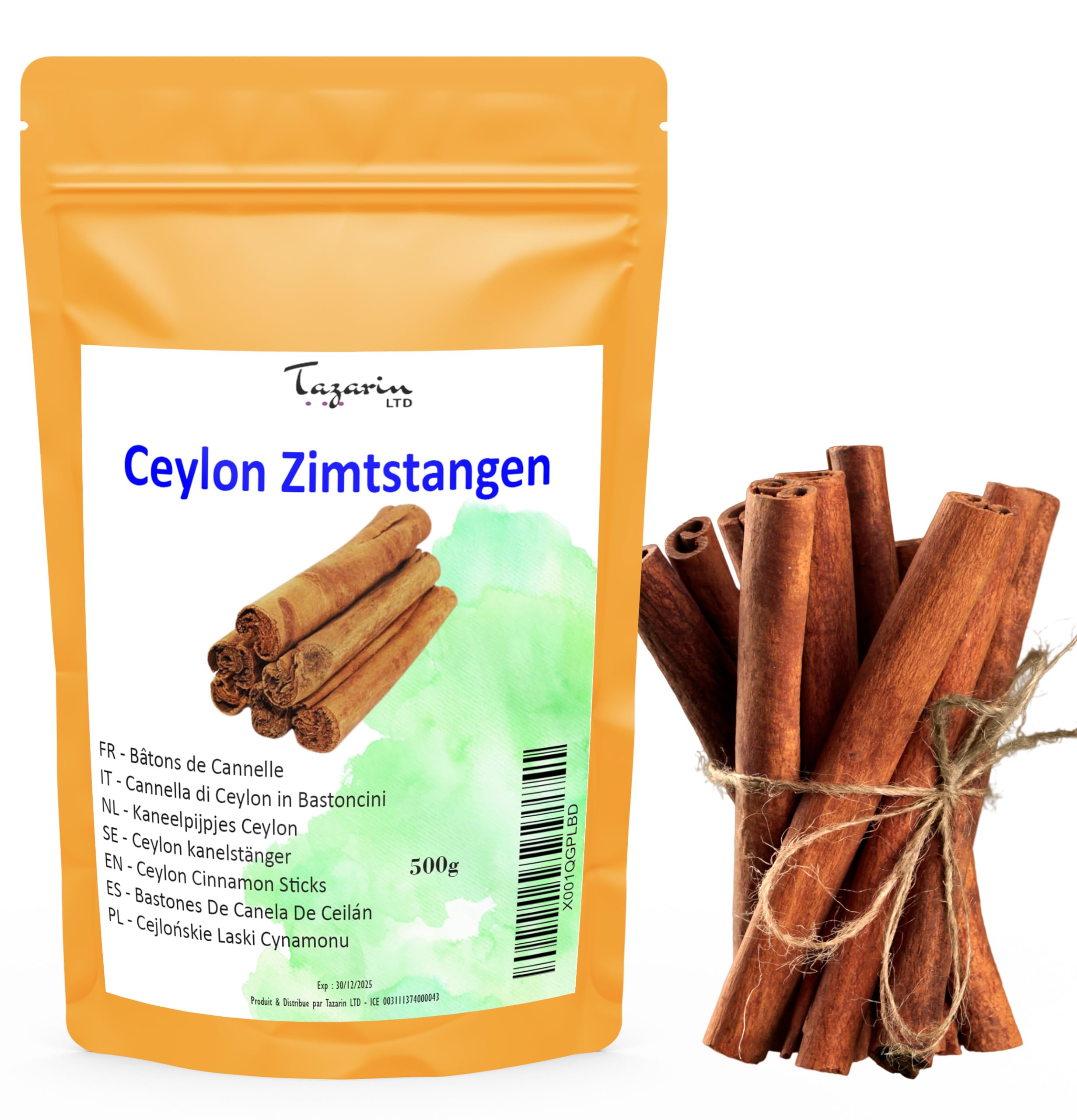 Ceylon Cinnamon Sticks - Intense Flavor, 100 Natural, Additive-Free for Infusions and Dishes. Contents: 500g of cinnamon sticks. Our products are of superior quality. Store in a cool, dry place. Cinnamon sticks, also known as Ceylon cinnamon, are a variety of aromatic and versatile spices made from the bark of the Ceylon cinnamon tree. This particular type of cinnamon originates from Sri Lanka, formerly Ceylon, and is characterized by its delicate flavor and subtle aroma. The production of cinnamon sticks involves grinding the thin, delicate bark of the Ceylon cinnamon tree into a fine powder. Unlike other cinnamon varieties such as Cassia cinnamon, Ceylon cinnamon is less bitter and has a sweeter, more complex aroma. Cinnamon sticks are often used in cooking as a spice in a variety of dishes, including pastries, desserts, hot drinks, and savory foods. They impart a pleasant warmth and depth of flavor to cakes, cookies, cereals, and beverages. In addition to its culinary uses, Ceylon cinnamon is also valued for its potential health benefits. It contains natural compounds that may have anti-inflammatory effects and is rich in antioxidants. This makes cinnamon sticks a popular ingredient in both healthy eating and traditional remedies. Overall, cinnamon sticks are a beloved spice that not only enhances the flavor of food but also offers a variety of potential health benefits. Its unique aroma and versatility make it an indispensable ingredient in the kitchen and beyond. Ceylon Cinnamon Sticks - Intense Flavor, 100 Natural, Additive-Free for Infusions and Dishes. Contents: 500g of cinnamon sticks. Our products are of superior quality. Store in a cool, dry place. Cinnamon sticks, also known as Ceylon cinnamon, are a variety of aromatic and versatile spices made from the bark of the Ceylon cinnamon tree. This particular type of cinnamon originates from Sri Lanka, formerly Ceylon, and is characterized by its delicate flavor and subtle aroma. The production of cinnamon sticks involves grinding the thin, delicate bark of the Ceylon cinnamon tree into a fine powder. Unlike other cinnamon varieties such as Cassia cinnamon, Ceylon cinnamon is less bitter and has a sweeter, more complex aroma. Cinnamon sticks are often used in cooking as a spice in a variety of dishes, including pastries, desserts, hot drinks, and savory foods. They impart a pleasant warmth and depth of flavor to cakes, cookies, cereals, and beverages. In addition to its culinary uses, Ceylon cinnamon is also valued for its potential health benefits. It contains natural compounds that may have anti-inflammatory effects and is rich in antioxidants. This makes cinnamon sticks a popular ingredient in both healthy eating and traditional remedies. Overall, cinnamon sticks are a beloved spice that not only enhances the flavor of food but also offers a variety of potential health benefits. Its unique aroma and versatility make it an indispensable ingredient in the kitchen and beyond.500g Bâtons de cannelle de Ceylan entières - Arôme Goût Intense - 100 Naturel, Pur et Sans Additifs - TazarinLtdDESCRIPTION DU PRODUIT Cannelle Ceylan Bâtons de Cannelle - Bâtons de Cannelle - Goût Intense 100 Naturel, Sans Additifs pour Infusions et Plats Contenu : 500 g de bâtons de cannelle - cannelle. Nos produits sont de qualité supérieure. Conserver dans un endroit frais et sec. Les bâtons de cannelle, également connu sous le nom de cannelle de Ceylan, sont une variante d'épices aromatiques et polyvalentes obtenue à partir de l'écorce des cannelliers de Ceylan. Ce type particulier de cannelle provient du Sri Lanka, l'ancien Ceylan, et se caractérise par son goût fin et ses arômes subtils. La fabrication de bâtons de cannelle consiste à broyer l'écorce fine et délicate des cannelliers de Ceylan en une poudre fine. Contrairement à d'autres variétés de cannelle comme la cannelle de Cassia, la cannelle de Ceylan est moins amère et a un arôme plus doux et plus complexe. Les bâtons de cannelle sont souvent utilisés dans la cuisine comme épice dans une variété de plats, y compris les pâtisseries, les desserts, les boissons chaudes et les aliments salés. Il donne aux gâteaux, biscuits, céréales et boissons une chaleur agréable et une profondeur de goût. En plus de son utilisation en cuisine, la cannelle de Ceylan est également appréciée pour ses bienfaits potentiels pour la santé. Il contient des composés naturels qui peuvent avoir des effets anti-inflammatoires et riches en antioxydants. Cela fait des bâtons de cannelle un ingrédient populaire pour une alimentation saine et des remèdes traditionnels. Dans l'ensemble, les bâtons de cannelle sont une épice appréciée qui non seulement améliore le goût des aliments, mais offre également une variété d'avantages potentiels pour la santé. Son arôme unique et sa polyvalence en font un ingrédient indispensable dans la cuisine et au-delà.