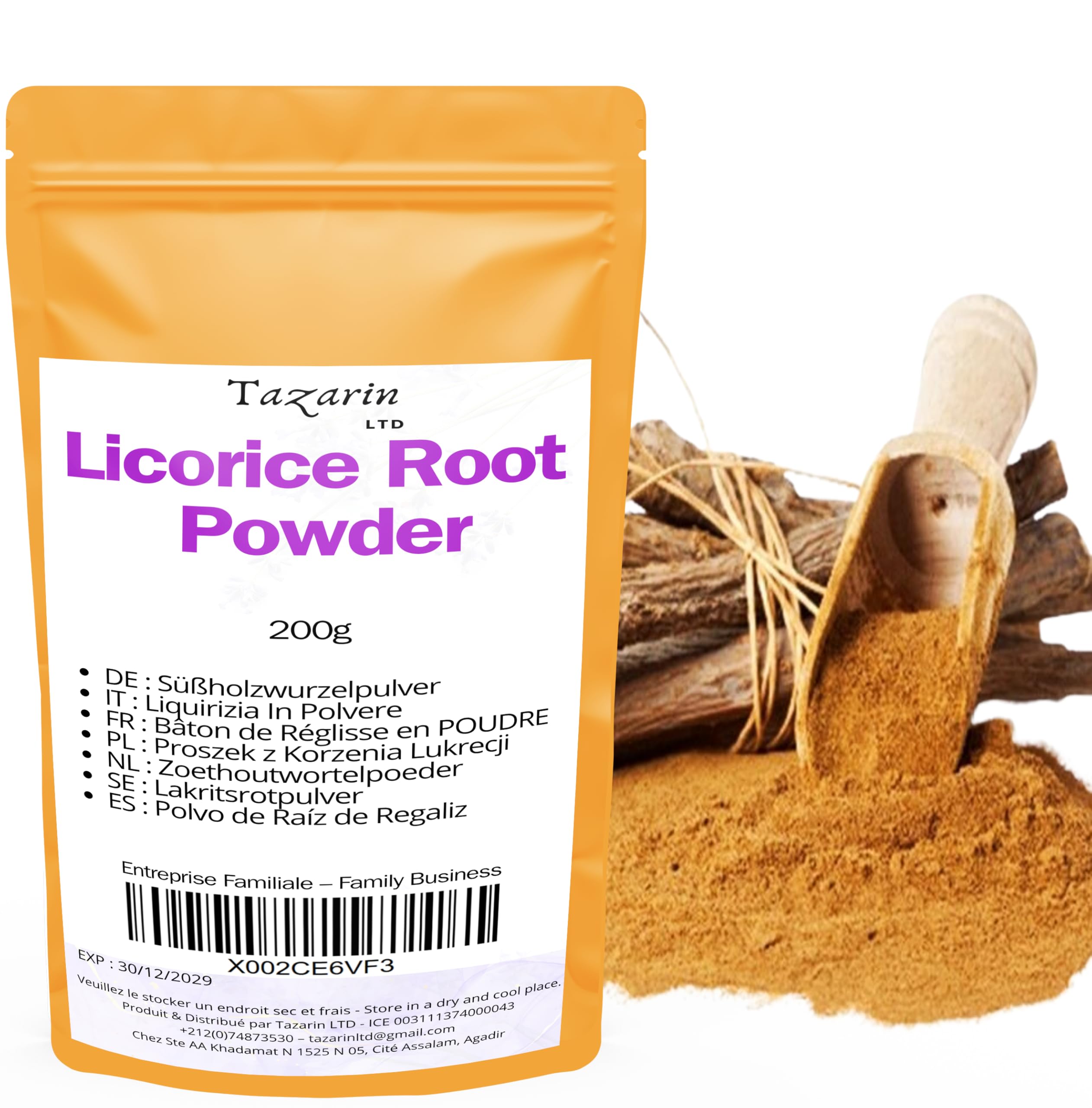 TazarinLtd - 200 g de racine de réglisse moulue - Poudre de racine de réglisse - Arôme et goût intenses - 100 naturel, pur et sans additifs