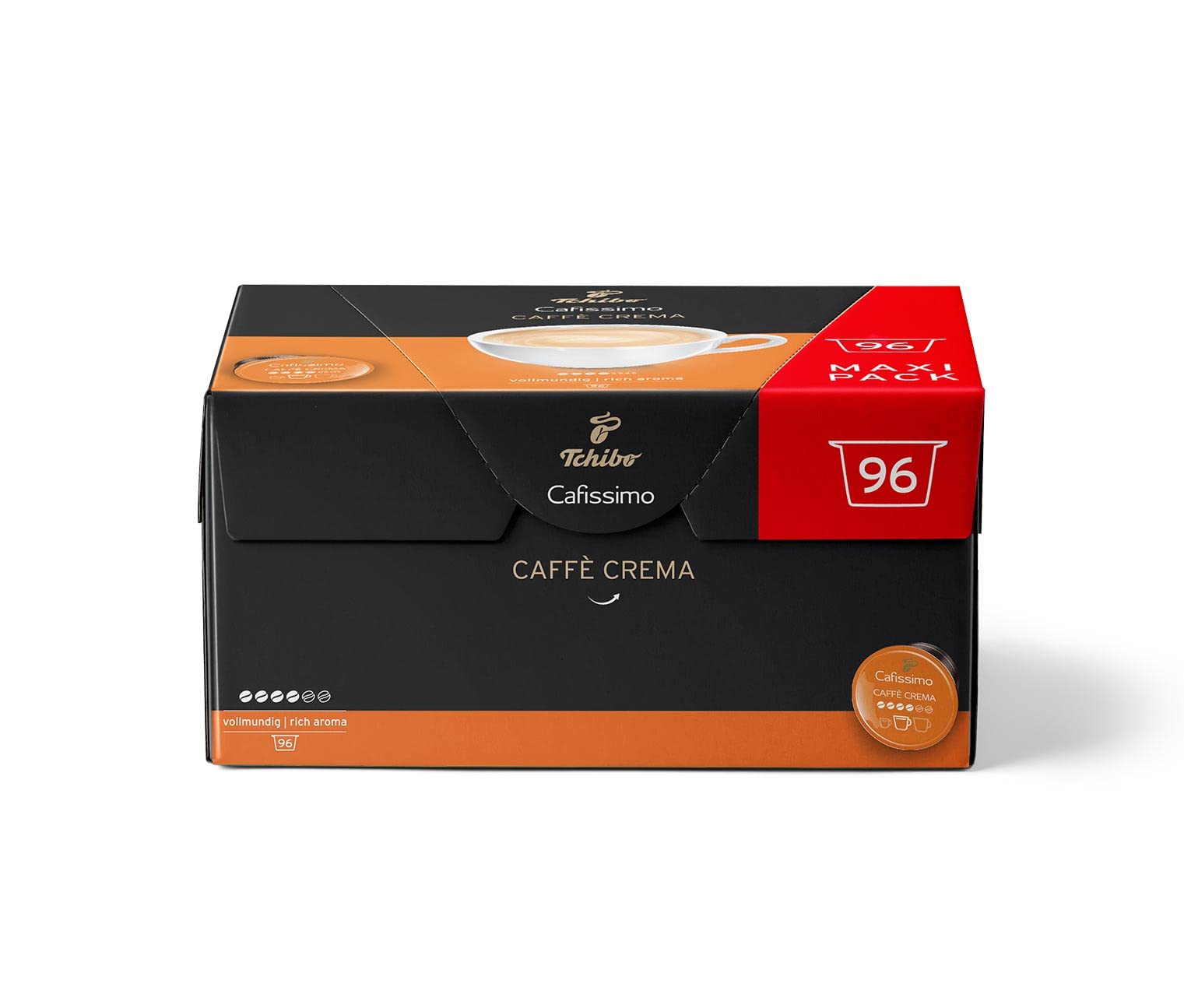 Tchibo Cafissimo Caffè Crema Rich Aroma Capsules 96 pièces, Arabica, Degré moyen de fumer Faible teneur en caféine