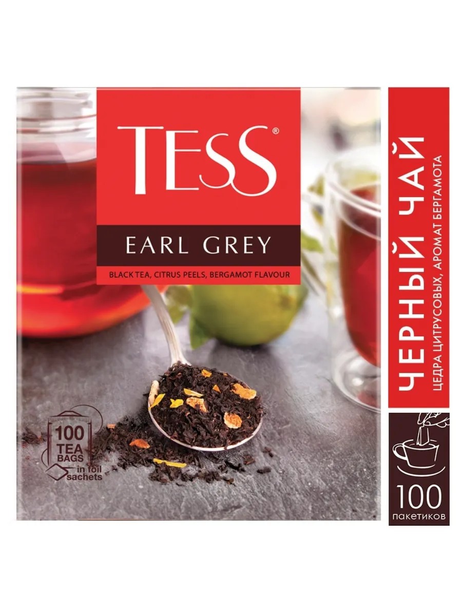 Чай черный Тесс Эрл Грей 100 пакетиков: сбалансированный вкус и аромат