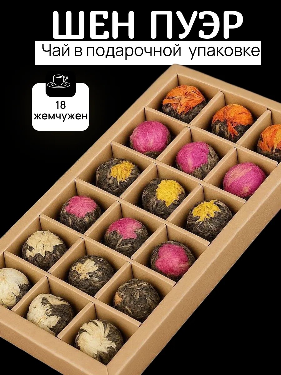 Чайная шкатулка Шен пуэр ассорти с цветами, в подарочной упаковке