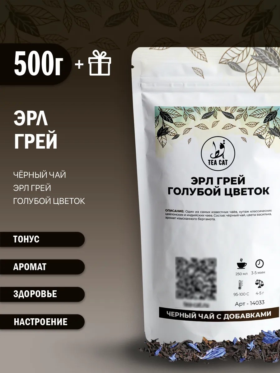 TEA CAT Черный чай Эрл Грей Голубой Цветок, 500г
