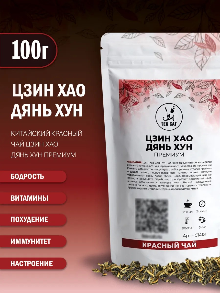 TEA CAT Чай красный элитный китайский Цзин Хао Дянь Хун,премиум,100г