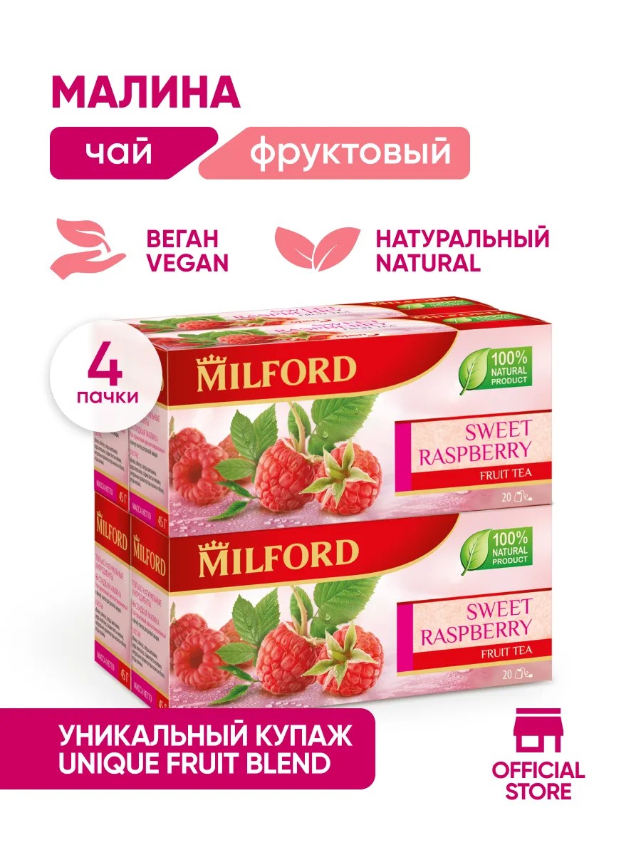 Фруктовый чай Milford Сладкая малина в пакетиках. Фруктово ягодный чай малина - это гармоничное сочетание сладкой, сочной и ароматной малины со спелыми яблоками, шиповником и освежающей цедрой апельсина. Фруктовый чай - это не только вкусный, но и очень полезный напиток: яблоки, цедра апельсина и плоды шиповника содержат большое количество витамина С, малина богата органическими кислотами и микроэлементами. Не содержит кофеин. Мы достигаем этого пряного вкусового профиля без использования каких-либо искусственных ароматизаторов, красителей или искусственных консервантов. Этот чай вкусен как в горячем, так и в холодном виде.