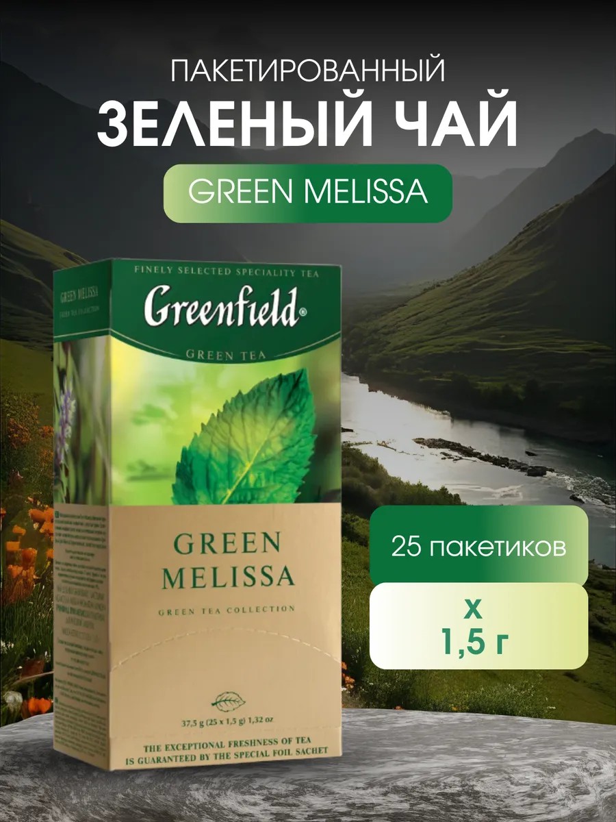 | Полное наименование товара | Чай в пакетиках Гринфилд Green Melissa (Зеленая мелисса) 25 пак. |