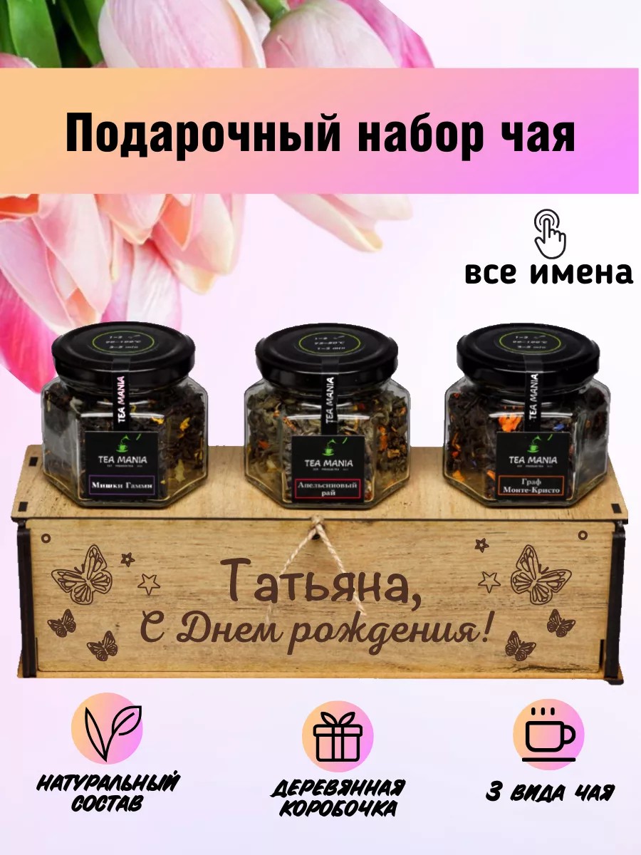 The Tatyana tea gift set is the perfect gift for lovers and connoisseurs of high-quality tea for any occasion: birthday, graduation, wedding, New Year, or March 8th.