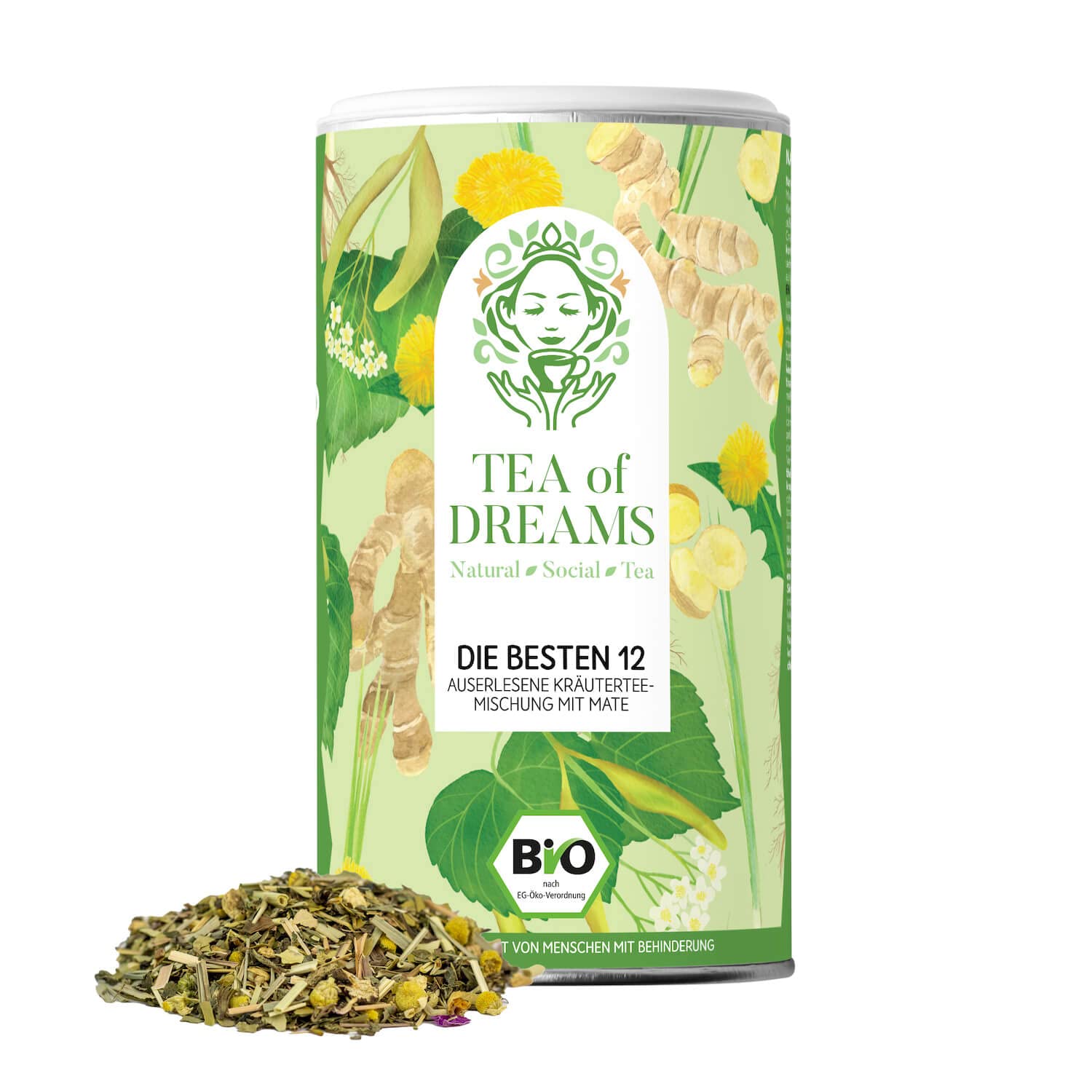 Tea of Dreams Organic "Die Besten 12" Fast Tea | Natural Herbal Tea Blend with 12 Ingredients and Mate | Loose Tea | 45g