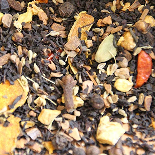 A spiced tea blend with black tea and Ayurvedic influences. Turmeric root slices provide a slightly different spiciness that harmonizes perfectly with the chilies. Try it with a splash of milk. INGREDIENTS Black tea (37 ), anise seeds, cinnamon pieces, ginger pieces, black peppercorns, cloves, chicory root, turmeric, flavoring DIRECTIONS No SAFETY WARNING No See more