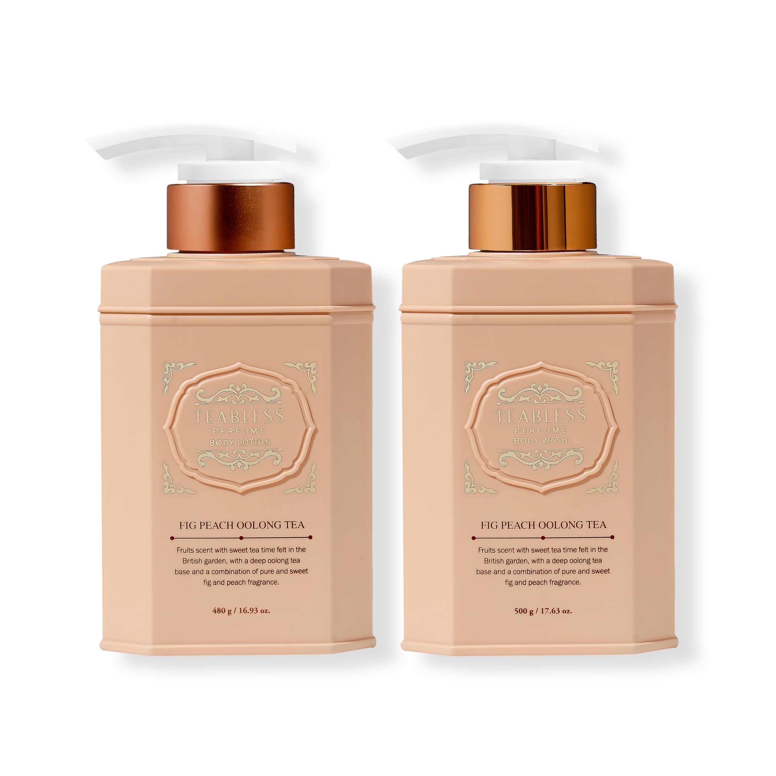 TEABLESS Fig Peach Oolong Tea Perfumed Body Lotion & Body Wash Duo Set Dry Skin & Sensitive Skin Daily Hydrating Moisturizer & Shower Gel Non-Greasy Fig Fruity Scent Korean Skin Care