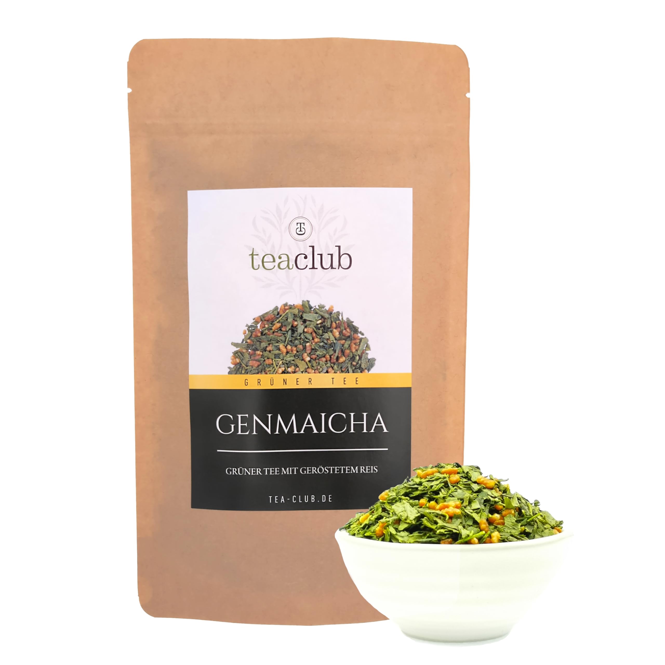 GENMAICHA - GREEN TEA WITH PINK RICE Genmaicha tea is a Japanese green tea with roasted rice. The rather large tea leaves resemble Bancha tea leaves and give the tea a sweet note. This green tea is suitable for Sencha and Bancha tea lovers. It is a mild green tea with a delicate sweetness and a pleasant aroma of puffed rice. Genmaicha is typically enjoyed as a tea in Japan. Origin: This travel tea has been carefully processed and comes from a Japanese family business in Kirishima, Japan. Preparation: Infuse 1 teaspoon per 200 ml at 75-80 C for 50 seconds. This tea can be infused multiple times. Ingredients: Green tea, roasted rice The TeaClub brand stands for high-quality, carefully selected teas with a distinctive taste. Good tea is our passion, and we would like to share it with you. Because tea is more than just a delicious beverage: preparing tea contains something meditative, and the shared pleasure of it combines. INGREDIENTS Ingredients: green tea, roasted rice INSTRUCTIONS Preparation: 4-5 tbsp 1 liter or 1 tsp 200 ml, 1. Infusion: steep at 75-80 C for 50 seconds. 2.-3. Infusion at 75 C for 20-30 seconds. See more