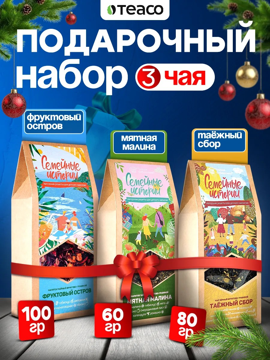 | Комплектация | Чай листовой Фруктовый остров - 1 шт.; Чай листовой травяной Мятная малина - 1 шт.; Чай листовой травяной Таежный сбор - 1 шт. |