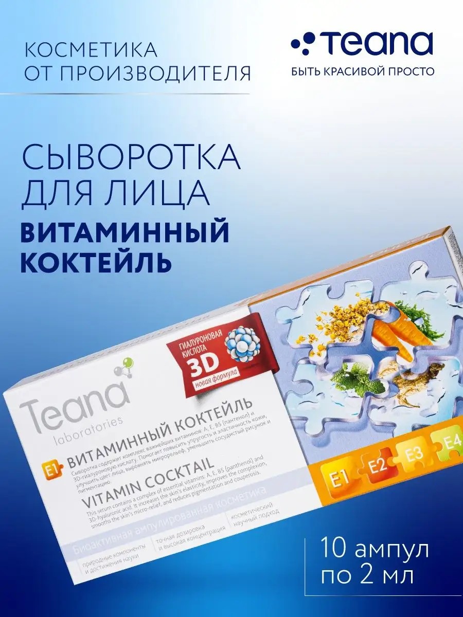 E1 Vitamin Cocktail Facial Serum is a skincare product in ampoules with a high concentration of active ingredients that penetrate deep into the skin and provide noticeable results.
