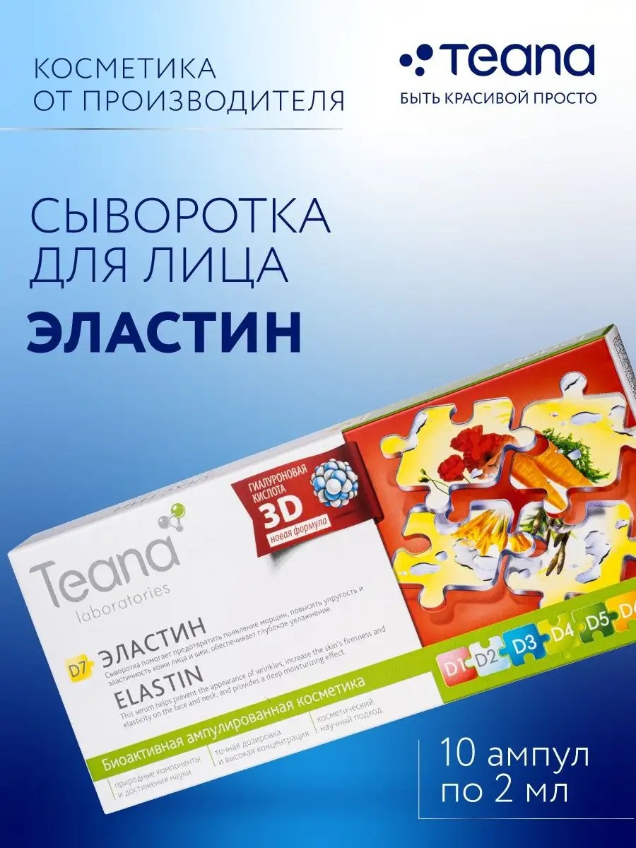 D7 Elastan Facial Serum is a skincare product in ampoules with a high concentration of active ingredients that penetrate deep into the skin and provide a noticeable effect.