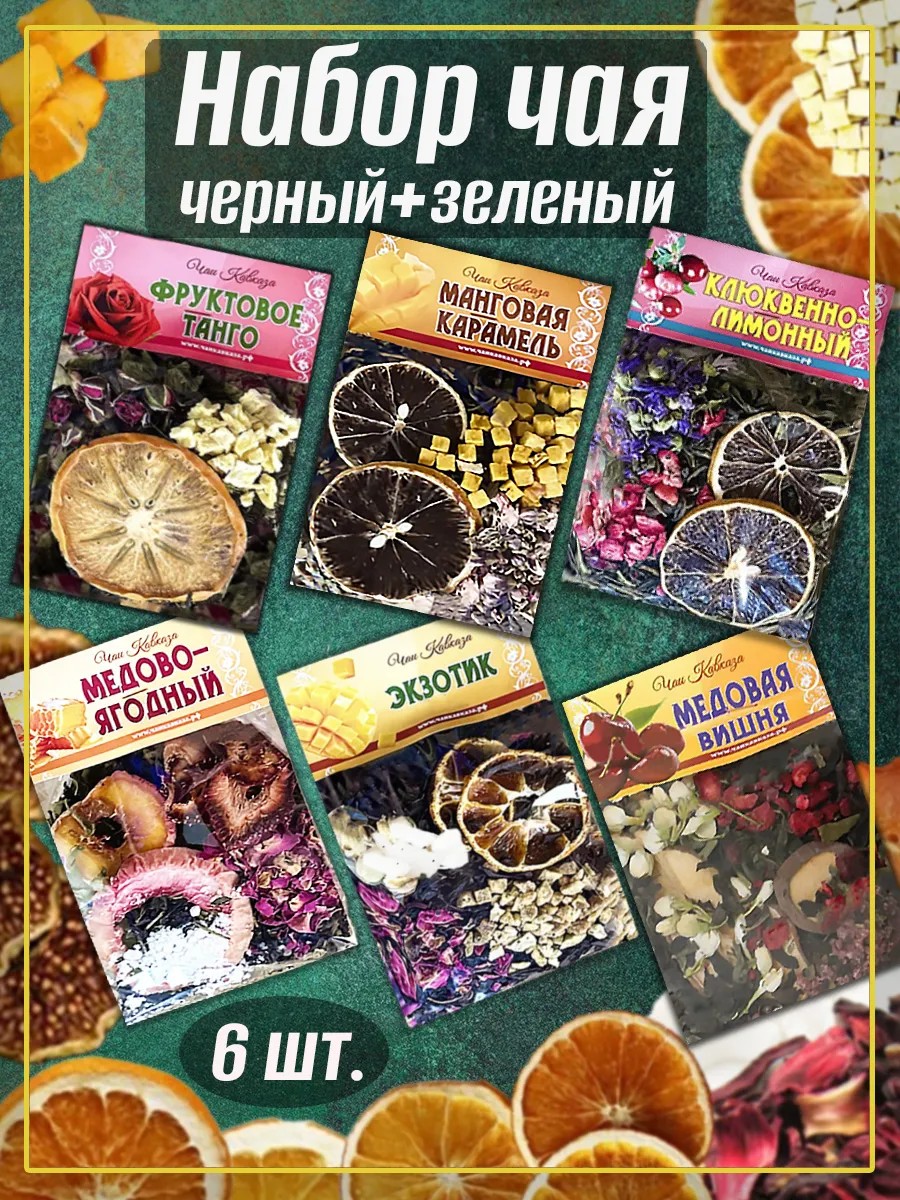 Чаи Кавказа Набор черного и зеленого чая с фруктами и ягодами микс 6 шт