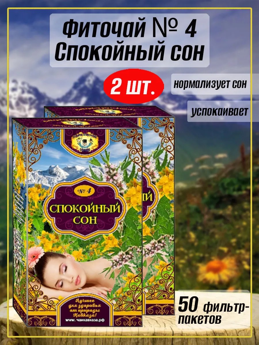 Чаи Кавказа Спокойный Сон № 4, фиточай 2 упаковки