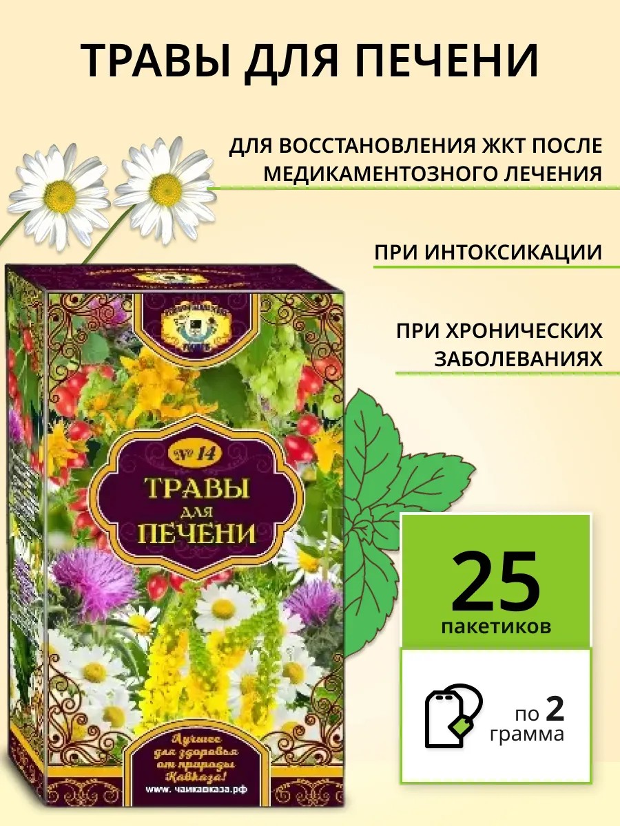 Herbal tea in bags "Herbs for the liver" with milk thistle is used for preventive purposes and in complex therapy for diseases of the liver, gallbladder, and biliary tract.
