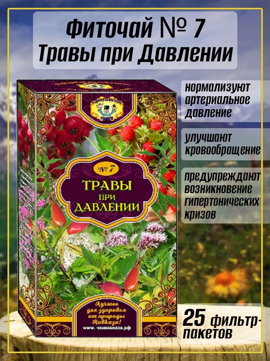 Чаи Кавказа Травы при Давлении № 7, фиточай, 1 упаковка