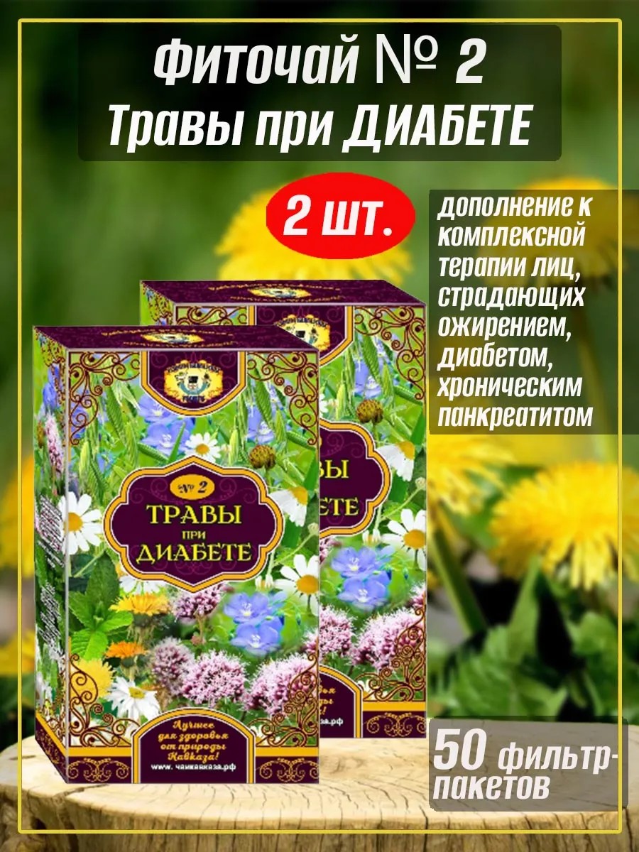 Чаи Кавказа Фиточай Травы при Диабете № 2, 2 упаковки