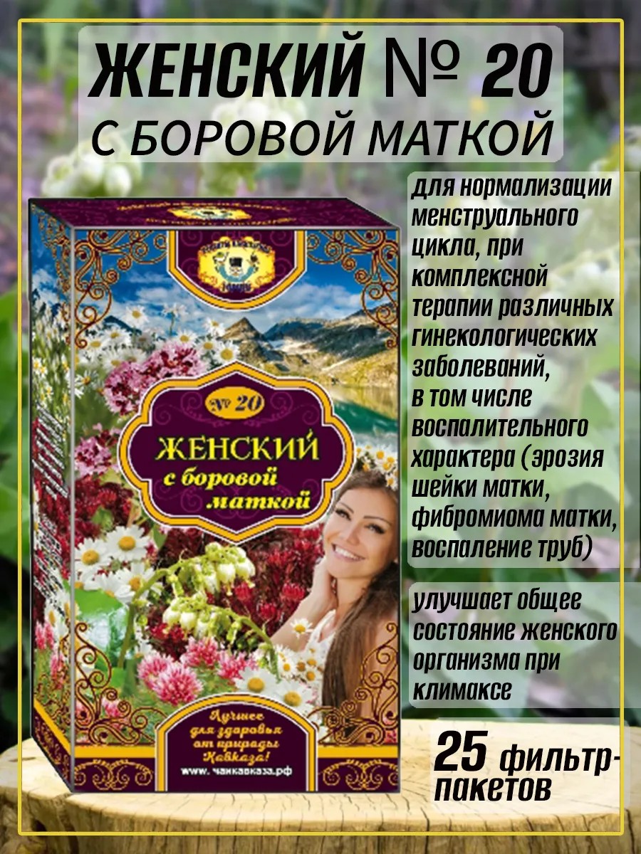 Чаи Кавказа Женский с боровой маткой № 20, фиточай, чай, 1 уп