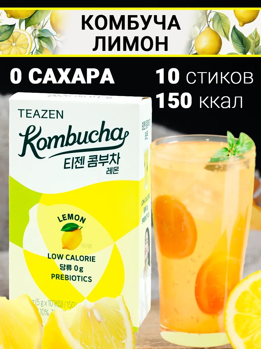 Ферментированный напиток с пробиотиками комбуча со вкусом лимона TEAZEN Kombucha Lemon.