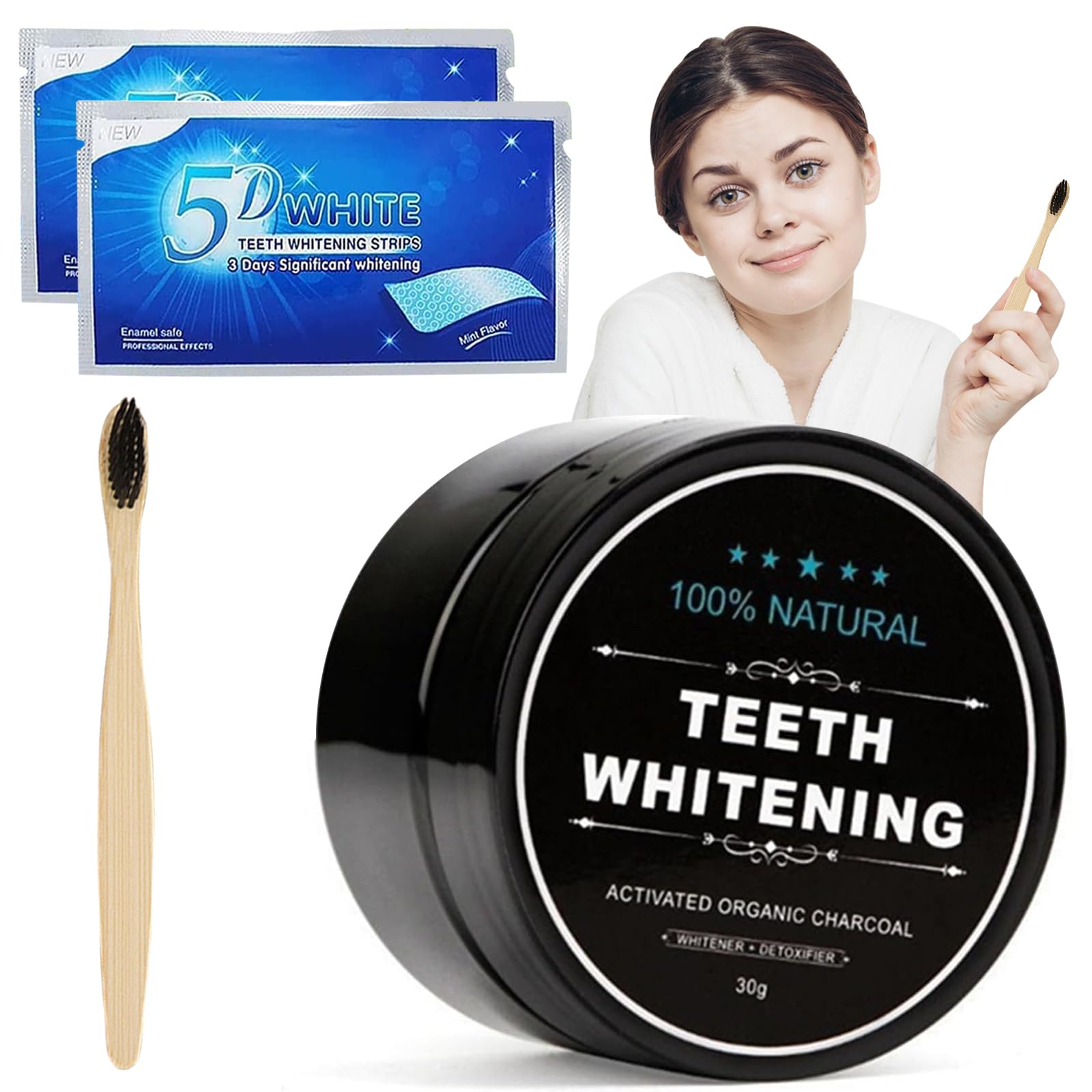 Activated carbon powder tooth whitening set Activated carbon tooth powder made of coconut shell powder has many invisible pores that can absorb contamination and stains in the mouth and easily rinse after use. With consistent, long -term use, activated carbon tooth powder can give you a bright white smile. Product list 1*natural charcoal tooth white powder (30g) 1*bamboo toothbrush 2*tooth whitening whitening strips Service: If you have any questions about the product, you can contact us in good time, we will answer you within 24 hours.applicable groups: Suitable for people with bad breath or stains on the teeth, the use of activated carbon powder can keep your mouth fresh breath and care of your mouth so that your teeth are white and your smile is brighter.Application: Simply moisten your toothbrush, carefully dip them in the powder and brush your teeth for about two minutes.Then rinse your mouth out with water or clean again with toothpaste to remove powder residues from the teeth.Tooth whitening whitening strips: have a calming and refreshing taste that adheres well on the teeth and can lighten up sensitive teeth.Use them together with activated carbon tooth powder to reduce tartar formation and periodontal problems.Main purpose: activated carbon Teeth Whitening removed superficial spots caused by tea, coffee, cola, wine stains, colored foods, etc.Tooth white set: Our set contains 1* activated carbon tooth powder, 1* bamboo toothbrush, 2* tooth whitening whitening strips that help to lighten your teeth, improve gum problems and refresh your breath. Aktivkohle Pulver Zahnaufhellung Set Aktivkohle-Zahnpulver aus Kokosnussschalenpulver hat viele unsichtbare Poren, die Verunreinigungen und Flecken im Mund absorbieren und nach der Anwendung leicht ausgespült werden können. Bei konsequenter, langfristiger Anwendung kann Aktivkohlezahnpulver Ihnen ein strahlend weißes Lächeln schenken. Produkt Liste 1*Natürliche Holzkohle Zahnweißpulver (30g) 1*Bambus-Zahnbürste 2*Zahnaufhellung Whitening Strips Service: Wenn Sie irgendwelche Fragen über das Produkt haben, können Sie uns rechtzeitig kontaktieren, wir werden Ihnen innerhalb von 24 Stunden antworten.Anwendbare Gruppen: geeignet für Menschen mit schlechtem Atem oder Flecken auf den Zähnen, die Verwendung von Aktivkohle-Pulver kann Ihren Mund frischen Atem und Pflege Ihres Mundes zu halten, so dass Ihre Zähne weißer sind und Ihr Lächeln ist heller. Anwendung: Befeuchten Sie einfach Ihre Zahnbürste, tauchen Sie sie vorsichtig in das Pulver und putzen Sie Ihre Zähne etwa zwei Minuten lang. Danach spülen Sie den Mund mit Wasser aus oder putzen erneut mit Zahnpasta, um Pulverreste von den Zähnen zu entfernen. Zahnaufhellung Whitening Strips: haben einen beruhigenden und erfrischenden Geschmack, der gut auf den Zähnen haftet und selbst empfindliche Zähne aufhellen kann. Verwenden Sie sie zusammen mit Aktivkohle-Zahnpulver, um Zahnsteinbildungund parodontale Probleme zu reduzieren. Hauptzweck: Aktivkohle Teeth Whitening entfernt oberflächliche Flecken, die durch Tee-, Kaffee-, Cola-, Weinflecken, gefärbte Lebensmittel usw. verursacht werden. Zahnweiß Set:Unser Set enthält 1*Aktivkohle-Zahnpulver, 1* Bambuszahnbürste, 2* Zahnaufhellung Whitening Strips, die helfen, Ihre Zähne aufzuhellen, Zahnfleischprobleme zu verbessern und Ihren Atem zu erfrischen.TECHEEL Aktivkohle Zahnpasta Pulver Zahnweiss Pulver Aktivkohle Teeth Whitening Powder Zahnaufhellung Bleaching Zähne Aufhellen Zahnreinigung für Natürlich Weiße Zähne (A)