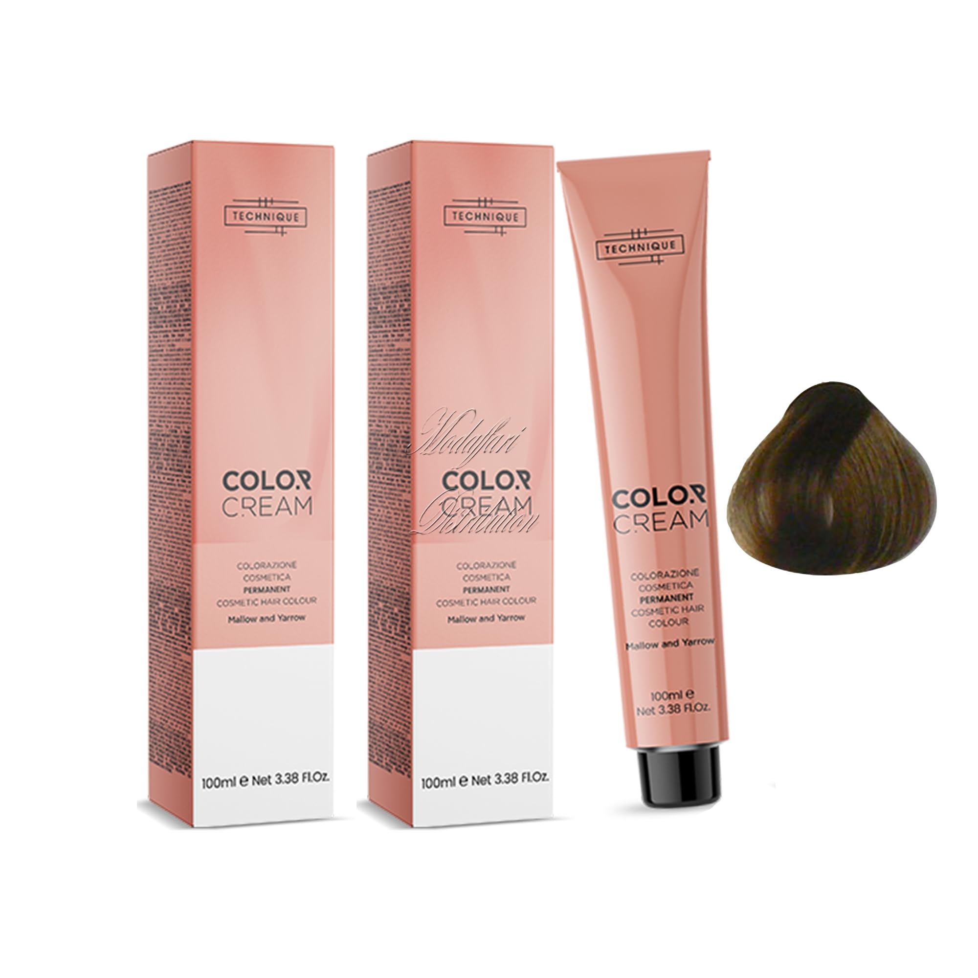 Color Cream, a new generation professional cosmetic hair color. Formulated with highly pure coloring agents and Achillea, Malva, and rice proteins to repair and enrich the hair fiber, leaving it soft and voluminous. For professional use. 100ml tube. For even and safe coloring, Color Cream was born, the new cosmetic hair color that is revolutionizing the world of hairstyling. A high-tech solution for your hair, the cream adheres to each strand, creating a coloring film that guarantees surprising and unique touch-ups. Its delicate formula does not constrict the hair structure on the contrary, it invigorates it because it is enriched with beneficial natural substances: Achillea, long known for its healing properties, regenerates the hair shaft from root to tip, giving the hair tone Malva makes hair soft and silky thanks to its vitamin composition (B1, B2, C, and Carotene) Rice proteins generate hydration and combat hair fragility, restoring body and protection.Sold by Modaffari Distribution. Its delicate formula doesn't damage the hair structure on the contrary, it invigorates it because it is enriched with beneficial natural substances: Yarrow, long known for its healing properties, regenerates the hair shaft from root to tip, giving the hair its color Mallow makes hair supple and silky thanks to its vitamin composition (B1, B2, and C, Carrot E) Rice proteins generate hydration and combat hair fragility, restoring body and protection. For even and safe coloring, Color Cream was born, the new cosmetic hair color that is revolutionizing the world of hair styling. A high-tech solution for your hair, the cream adheres to the hair, creating a coloring film that guarantees surprising and unique touch-ups. Formulated with highly pure coloring substances and with Yarrow, Mallow, and Rice Proteins to repair and enrich the hair fiber, giving softness and volume. For professional use. 100 ml tube. Technique Color Cream 2 bottles of 100 ml 6 Dark Biond.Color Cream, coloration cosmétique professionnelle nouvelle génération. Formule avec des substances colorantes hautement pures et avec Achillea, Malva et protéines de riz pour réparer, enrichir la fibre et donner douceur et volume. Utilisation professionnelle Tube de 100 ml Pour une coloration homogène et sûre est née Color Cream, la nouvelle coloration cosmétique qui révolutionne le monde du coiffage. Solution hi-tech pour vos cheveux, la crème se fixe sur chaque cheveu en créant un film colorant qui garantit des retouches surprenantes et uniques. Sa formulation délicate n'étroite pas la structure capillaire, au contraire, elle renvigorera car elle enrichie avec des substances naturelles bienfaisantes : l'Achillea, connu depuis toujours pour ses propriétés cicatrisantes, régénère la tige à la racine en donnant du ton au cheveu la Malva rend les cheveux doux et soyeux grâce à sa composition vitaminée (B1, B2 et C, Carotéeeee). ) Protéines du Le riz génère l'hydratation et luttent la fragilité du cheveux, en lui rendant corps et protection.Vendu par Modaffari Distribution. Sa formule délicate n'entraîne pas la structure capillaire, au contraire, la revigorce car elle enrichie avec des substances naturelles bénéfiques : l'Achillea, connue depuis toujours pour ses propriétés cicatrices, régénère la tige à la racine en donnant ton au cheveu la mauve rend les cheveux souples et soyeux grâce à sa composition vitamine (B1, B2 et C, Carottie E) les protéines du riz génèrent l'hydratation et combattent la fragilité du cheveu, en lui restituant le corps et la protection. Pour une coloration homogène et sûre est née Color Cream, la nouvelle coloration cosmétique qui révolutionne le monde de l'hair styling. Solution hi-tech pour vos cheveux, la crème se fixe sur un cheveu en créant un film colorant qui garantit des retouches surprenantes et uniques. Formule avec des substances colorants hautement pure et avec Achillea, Mauve et Protéines du Ris, pour réparer, enrichir la fibre et donner douceur et volume. Utilisation professionnelle Tube de 100 ml. Technique Color Cream 2 flacons de 100 ml 6 Biond foncé.TECHNIQUE COLOR CREAM - TINTA 100 ML (6 Blond foncé) 2 pièces