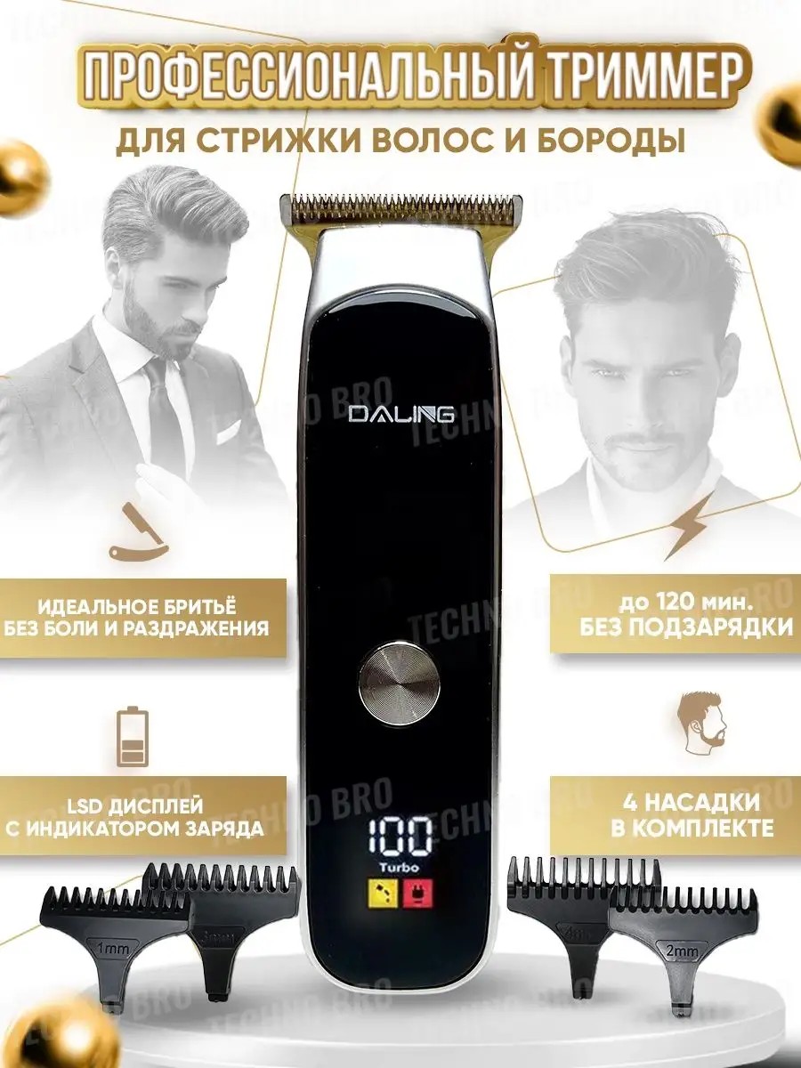Машинка для стрижки волос и бороды прекрасно подходит для моделирования причёски и бороды. Машинка для стрижки волос лица и тела отлично справляется со стрижкой головы, позволяет деликатно смоделировать форму бороды и усов, аккуратно и безболезненно удалить лишние волосы. Наш профессиональная машинка для моделирования бороды и усов решит проблемы с ежедневным мужским мучением в два счета. Хотите стильную щетину-просто установите нужную насадку из комплекта электробритвы мужской 1 мм, 2 мм, 3 мм, 4мм. Она подравнивает, делает контуры и бреет волосы любой длины в домашних условиях профессионально. Она оснащёна емким кабелем питания, при помощи USB обеспечивает удобную зарядку. Благодаря USB кабелю зарядку можно осуществить от розетки, powerbank, ноутбука любого переносного источника питания благодаря чему машинка для бритья удобна как для домашнего использования так и для путешествий. Триммер для волос имеет водонепроницаемую головку и легко очищается позволяет быстро и эффективно привести себя в порядок. Выбирая технику в Techno Bro вы выбираете легкость в работе, элементарную чистку под струей воды, отсутствие необходимости посещать барбершоп.