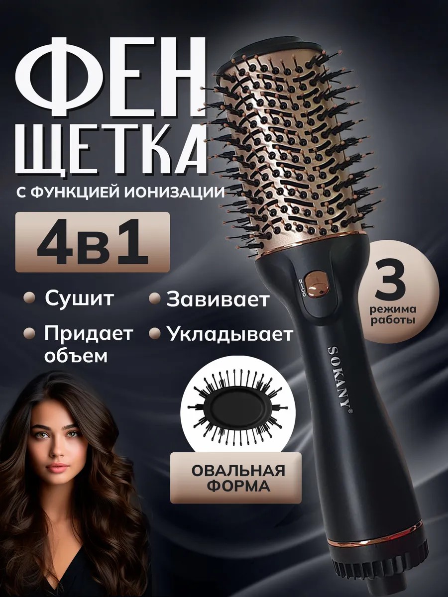 Универсальная насадка - расчёска с крутящимся вращающимся проводом создаст нужную форму и прикорневой объем локонов за пару минут . Профессиональный фен щетка с вращением шнура на 360° градусов сочетает сразу набор из 3 приборов для сушки и укладки волос: круглая фен-расческа , парикмахерский утюжок - выпрямитель , электрический брашинг и диффузор - плойку для завивки и выпрямления мелких кудрей . Фен-щетка с ионизацией разглаживает пряди , сохраняя структуру при повседневном использовании .