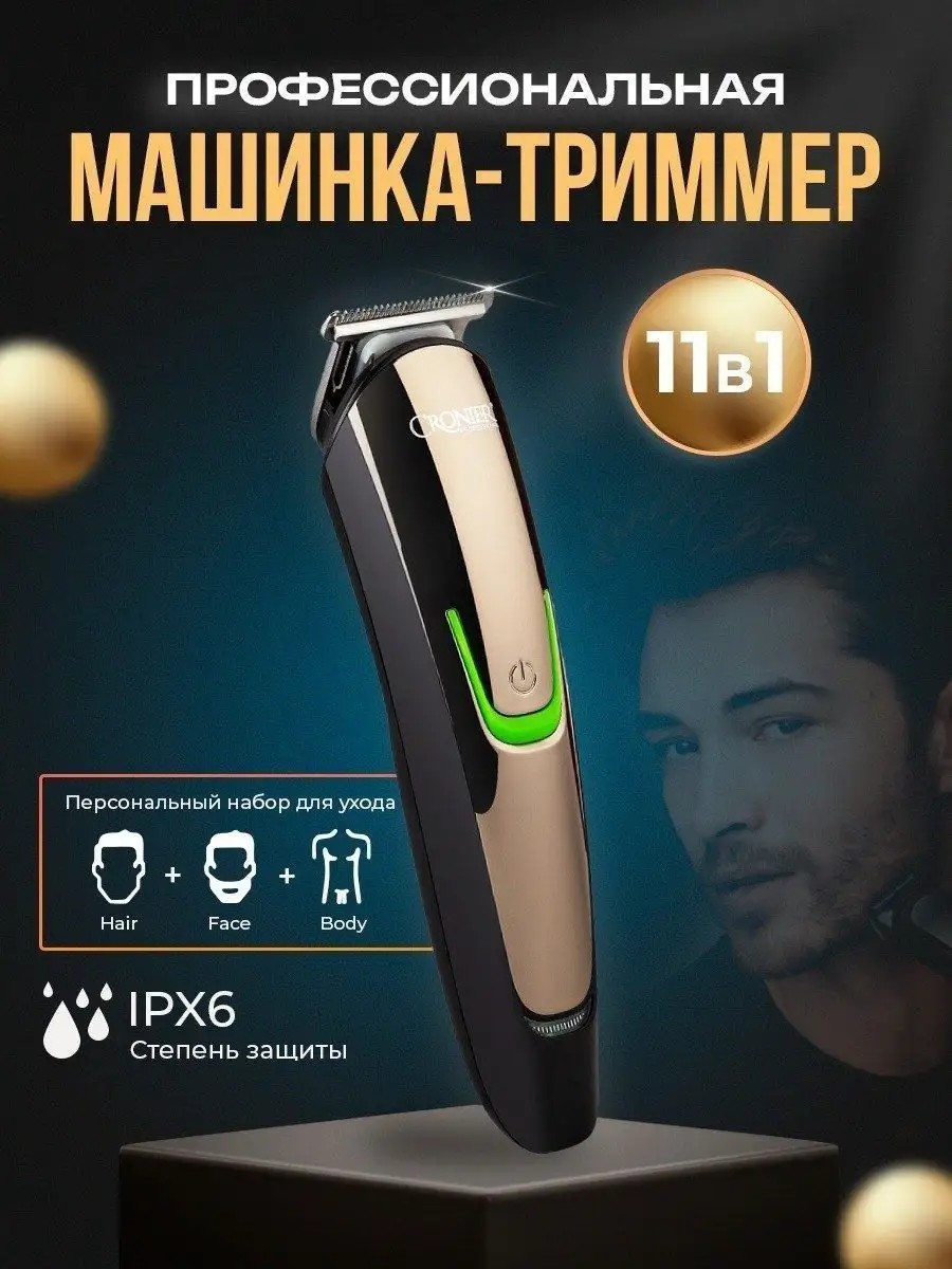 Триммер для бороды и усов Cronier CR-866 – универсальный набор для бритья и стрижки, который станет отличным подарком для любого мужчины. Эта электрическая бритва максимально удобна и проста в использовании, поэтому может служить как рабочий инструмент профессиональных стилистов в парикмахерских и барбершопах, так и как бытовая техника для дома, обеспечивающая комплексный уход за головой, лицом и телом. Тример комплектуется шестью съемными насадками, которые облегчают удаление нежелательной растительности и поддержания личной гигиены различных частей тела. Машинка для стрижки бороды и пилинга имеет узкую насадку, с помощью которой можно создавать рисунки и хэйр-тату. Дополнительно этот триммер может использоваться для создания детских причесок на голове. Данный аппарат превосходит многие другие бритвы и триммеры, поскольку облегчает уход и обеспечивает поддержание красоты бороды и усов. А также бакенбард и конечно же подходит для носа и ушей, бровей, подмышек, зоны бикини. Также удобство борьбы против растительности обеспечивается благодаря эргономичной головке шейвера. Машинка для стрижки волос профессиональная оснащается грамотно заточенными лезвиями из высококачественной нержавеющей стали, имеющими специальное покрытие, что позволяет ножам оставаться острыми даже после длительного и интенсивного применения. Данный прибор является отличным аналогом известного бренда xiaomi (ксиоми) и не уступает ему в мощности. Такая беспроводная бритва для бровей и бороды. А также интимной зоны оснащена встроенной аккумуляторной батареей. А заряда хватает на 2 часа работы. Корпус триммера для стрижки и укладки бороды выполнен с цифровым дисплеем, на котором отображается текущий заряд аккумулятора. Полностью машинка для бороды заряжается до 100% примерно за 1.5 часа. База мужской электробритвы для фиксации насадок отличается эргономической формой рукоятки, поэтому триммер для бритья удобно лежит в руке с минимальным риском выскальзывания. Наличие удобной подставки облегчает хранение всех предметов из подарочного бритвенного набора. В комплект с триммером входит масло для эффективной смазки и снижения силы трения ножей, щеточка для чистки лезвий. Набор для бритья мужской подарочный можно смело преподнести своему любимому мужу и отцу. А также брату и сыну. Но также подойдет другу и коллеге по работе. Электрическая беспроводная машинка для стрижки бороды станет отличным подарком мужчине на любые важные события и праздники. Не исключения это день рождения и День влюбленных. А также 23 февраля и профессиональный праздник.
