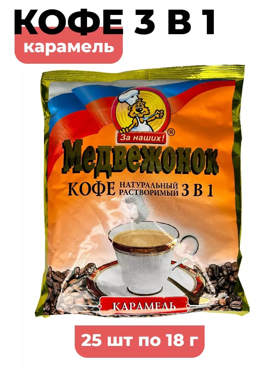 Медвежонок Кофе МЕДВЕЖОНОК 3 в 1 Карамель 25 пакетиков по 18 г