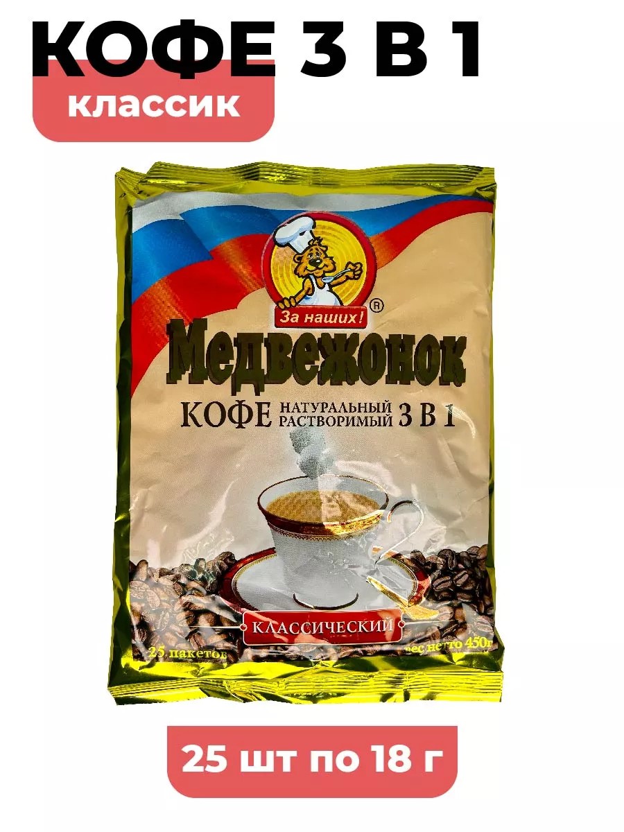 Медвежонок Кофе МЕДВЕЖОНОК 3 в 1 Классик 25 пакетиков по 18 г