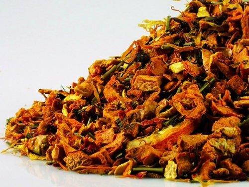 What a seductive and refreshing orange-lime flavor! Let yourself be won over by this blend of apple pieces with vitamin C (potatoes, flavoring, acidifier: citric acid, vitamin C), apple pieces, lemon peel, orange peel, lemongrass, hibiscus flowers, orange blossom, marigold flowers, a vitamin mix (vitamin C, niccin, vitamin E, pantothenic acid, vitamins B6, B2, B1, folic acid, biotin, vitamin B12, carrier: maltodextrin), and flavoring. Preparation recommendation: Quantity: 20-25 g l - Water temperature: 100 C - Infusion time: 5-10 minutes.