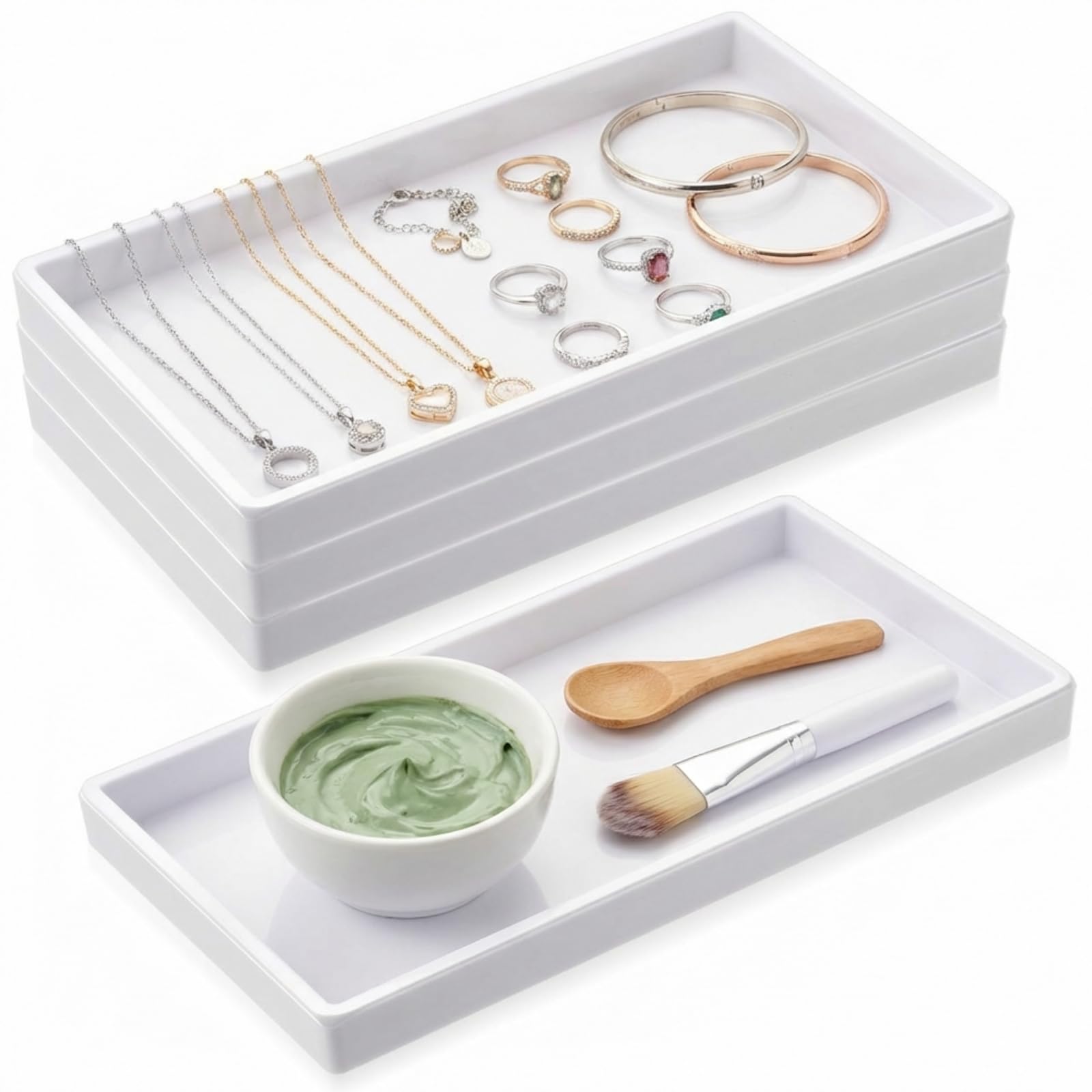 Thoughtful and Nice giving Idea: a nice giving for beauty enthusiasts, this skincare tray set is nice for organizing and applying DIY face masks, lotions, oils, and other cosmetics Its white design adds a touch of sophistication to any bathroom or vanity. Easy Care Material Crafted from Plastic: these white trays are built to last They resist scratching, chipping, and fading, ensuring long term use Their smooth surface allows for effortless cleaning with just a damp cloth. Versatile Multifunctional Use: this 4 piece set is nice for holding and organizing facial cleansers, skincare lotions, DIY mask ingredients, nail art supplies, body care products, and even small jewelry It offers versatile utility for your beauty and bathroom essentials. Portable and Practical Dimensions Designed for Convenience: each white plastic tray in this set measures 8.66 x 4.72 x 0.79 inches 22 x 12 x 2 cm Their compact size makes them easy to carry, store, and integrate into any workspace or bathroom. Complete Esthetician Skincare Tray Set: you will receive 4 reusable white plastic trays, for facial treatments or a spa like experience at home For estheticians, spa salons, or personal use, this set meets your daily skincare organization and sharing needs.