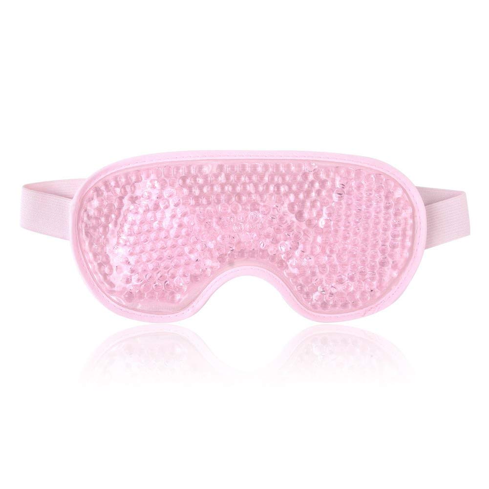 TEEROVA Cooling Eye Mask with Gel Bead - Reusable Gel Eye Mask for Dark Circles Puffy Eyes Dry Eyes Headaches Migraines Sinus (Pink)