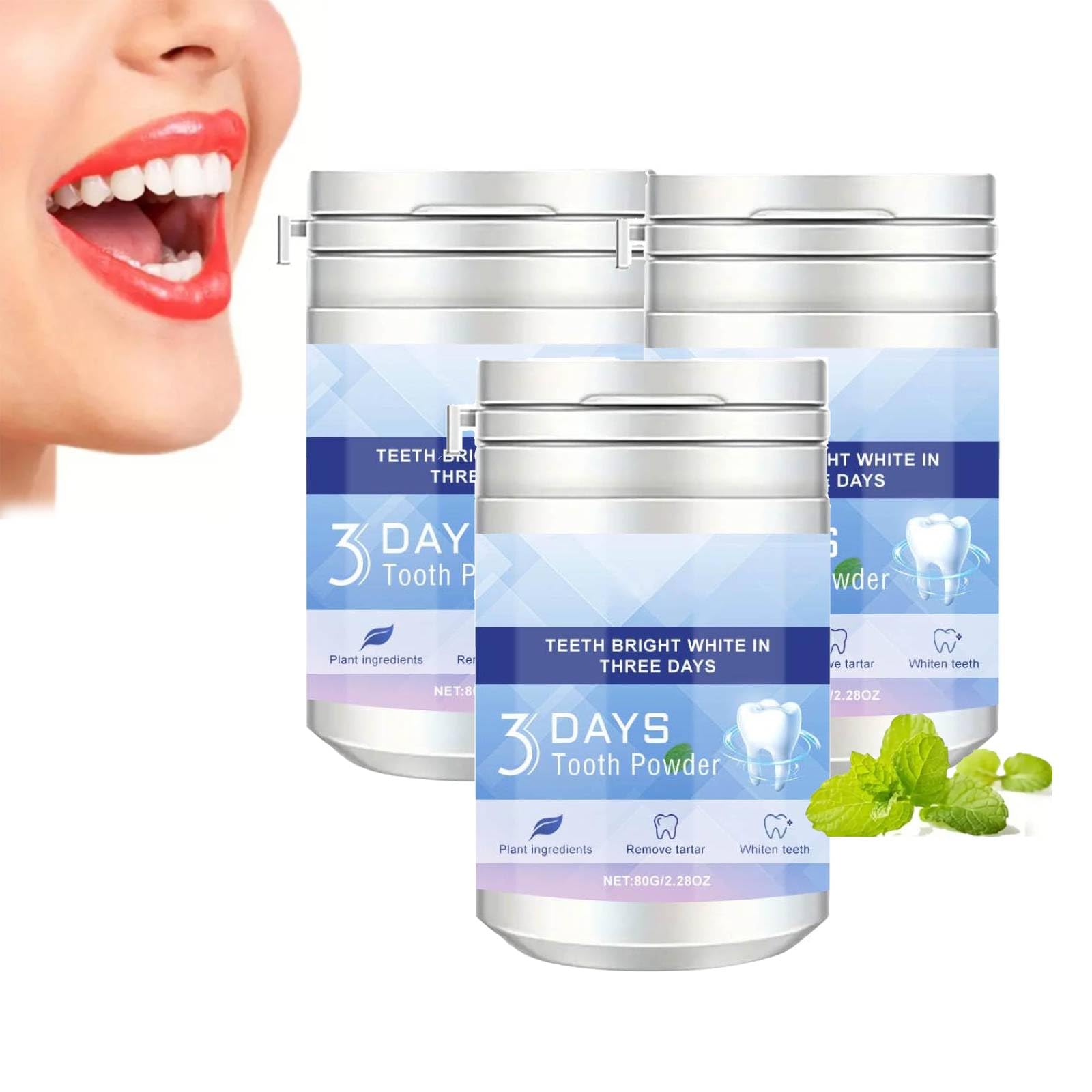 Packaging: 1 2 3 pcs Toothpaste Powder Notes: 1.Due To Manual Measurement, Please Allow A Difference Of 1-5g 1-2cm. 2.Due To Different Displays And Different Lighting, The Picture May Not Reflect The Actual Color Of The Item.Step 1: Wet the toothbrush slightly and the powder. Step 2: Brush your teeth with a small and gentle brush for 2 minutes, and finally rinse your mouth. Tooth whitening powder is a natural substitute for the whole family, which can promote the health of teeth and gums. The whole family can use it with confidence. Our tooth powder detergent uses advanced technology to effortlessly coffee, alcohol, and stains, thereby balancing tooth tone, hiding stains, increg overall brightness, and making smiles brighter. Tooth whitening powder penetrates into the gaps in tooth enamel, removing food debris and stains embedded in it. No left, it helps to effectively clean teeth and make smiles more beautiful. It can freshen your breath, bad breath, and give you a confident smile. Packaging: 1 2 3 pcs Toothpaste Powder Notes: 1.Due To Manual Measurement, Please Allow A Difference Of 1-5g 1-2cm. 2.Due To Different Displays And Different Lighting, The Picture May Not Reflect The Actual Color Of The Item.Step 1: Wet the toothbrush slightly and the powder. Step 2: Brush your teeth with a small and gentle brush for 2 minutes, and finally rinse your mouth. Tooth whitening powder is a natural substitute for the whole family, which can promote the health of teeth and gums. The whole family can use it with confidence. Our tooth powder detergent uses advanced technology to effortlessly coffee, alcohol, and stains, thereby balancing tooth tone, hiding stains, increg overall brightness, and making smiles brighter. Tooth whitening powder penetrates into the gaps in tooth enamel, removing food debris and stains embedded in it. No left, it helps to effectively clean teeth and make smiles more beautiful. It can freshen your breath, bad breath, and give you a confident smile.