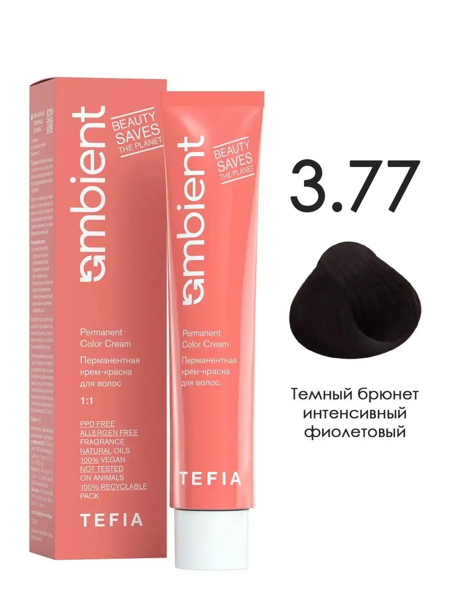 | Полное наименование товара | Перманентная крем краска для волос 3.77 Темный брюнет интенсивный фиолетовый AMBIENT Permanent Color Cream 60мл |