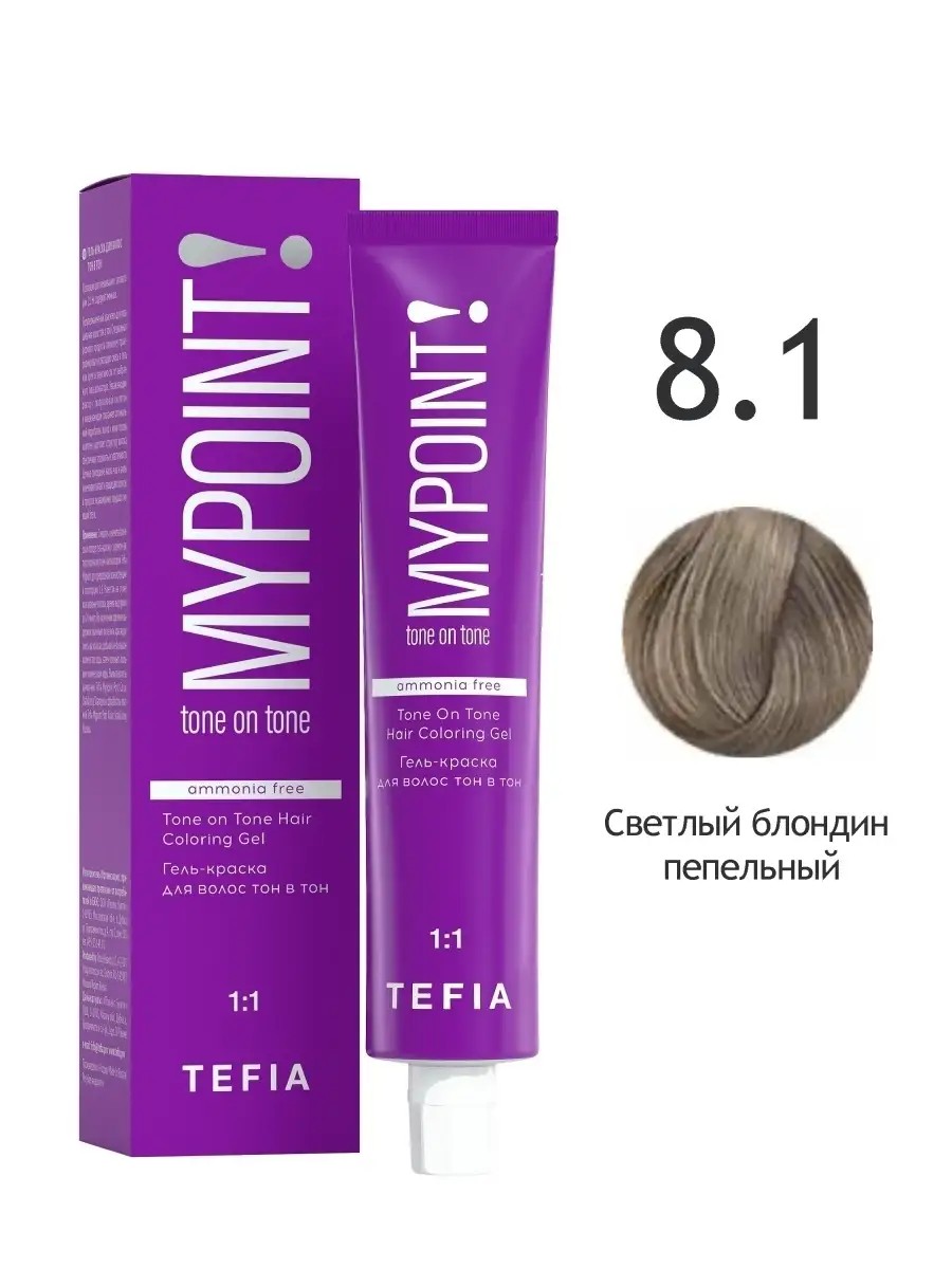 | Полное наименование товара | Гель-краска для волос тон в тон 8.1 светлый блондин пепельный 60 мл, Линия MYPOINT |