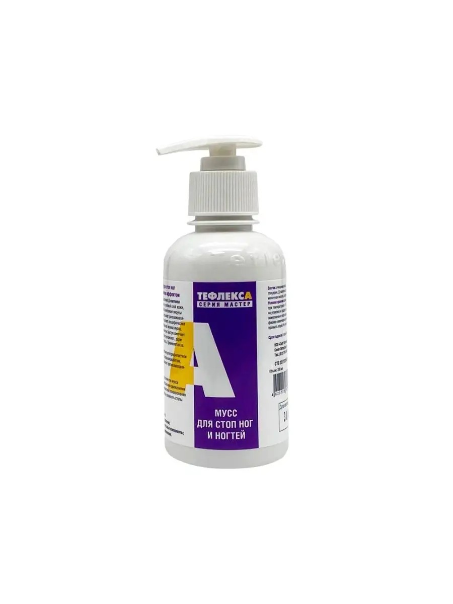 Увлажняющий мусс для ног с антисептическим эффектом Тефлекс А Мастер бренда МультиДез в объеме 200 мл. Нежный, насыщенный по текстуре мусс рекомендован подолагами для ежедневного ухода за кожными покровами стоп (с целью предотвращения образования трещин) и для применения на завершающем этапе педикюра. Продукт обладает тройным, комплексным воздействием: Д-пантенол и масло бабассу глубоко проникают в роговой слой кожи, увлажняя и смягчая ее. ТефлексА уничтожает вирусы и бактерии на поверхности кожи, оказывая антисептическое и ранозаживляющее действие, удаляет специфические запахи и зуд. Кремообразная основа мусса благодаря активным компонентам глубоко увлажняет и быстро смягчает грубевшую кожу ног, снимает усталость, дарит мягкость и гладкость. Мусс содержит натуральные растительные компоненты, подходит для клиентов с сахарным диабетом, улучшает регенерацию клеток, оказывает противовоспалительное действие (профилактику грибкового поражения). Хранить в недоступном для детей месте при температуре от +1 до +40 градусов Цельсия. При замерзании и после размораживания продукт сохраняет свои физико-химические свойства. Небольшое количество мусса нанести на чистую и сухую кожу массажными движениями до полного впитывания. Для профилактики возникновения трещин, натоптышей, мозолей, грибка, увлажнять стопы ног 2-3 раза в неделю. Слова - уход уходовый жидкость препарат крем сыворотка против пота увлажняющий увлажнение очищающий мультидез женский мужской защита защитный косметика косметический тоник пяток пяточек подросткам флакон всех типов кожи жирной сухой проблемной чувствительной лосьонспрей professional антисептик маникюрный педикюрный.